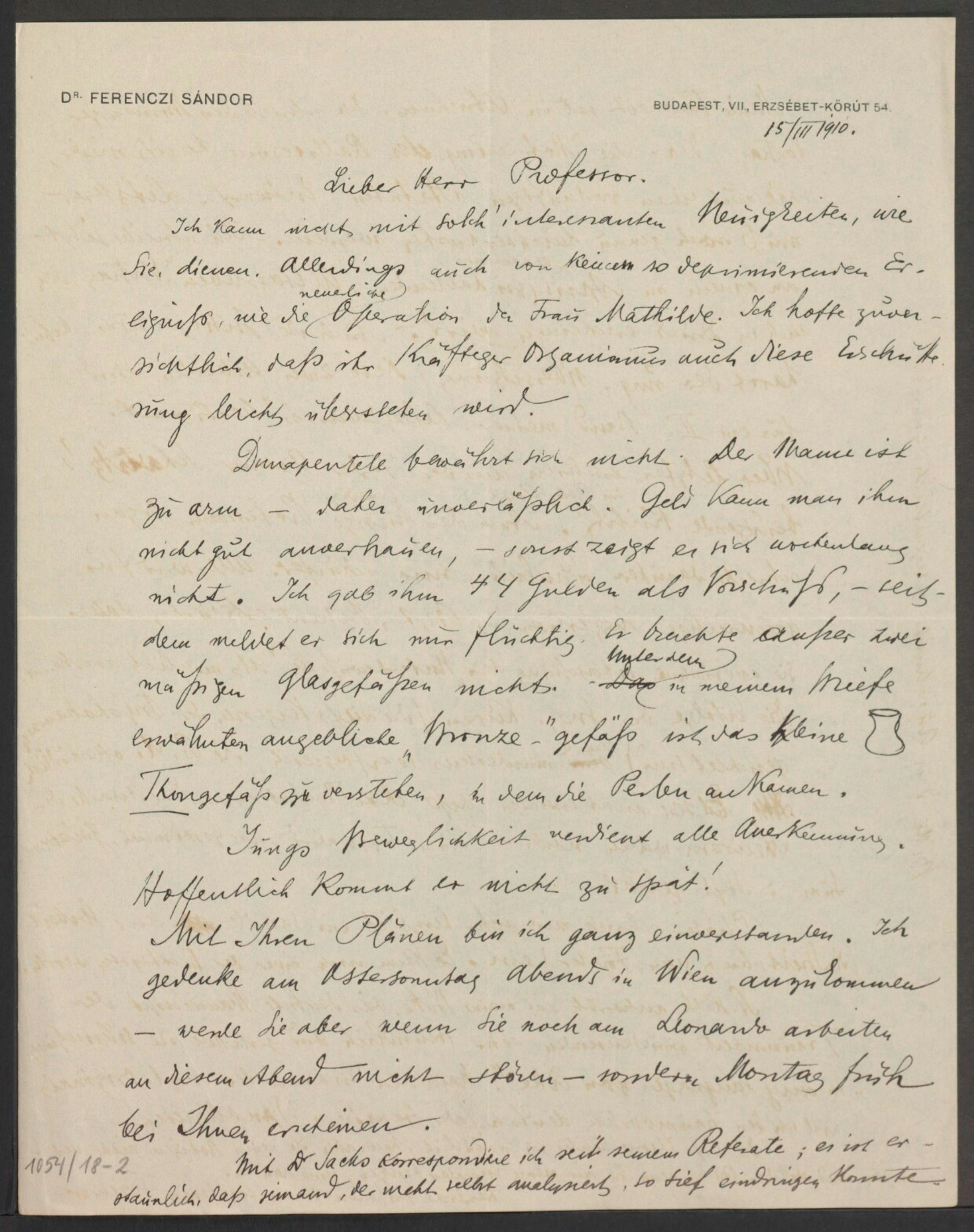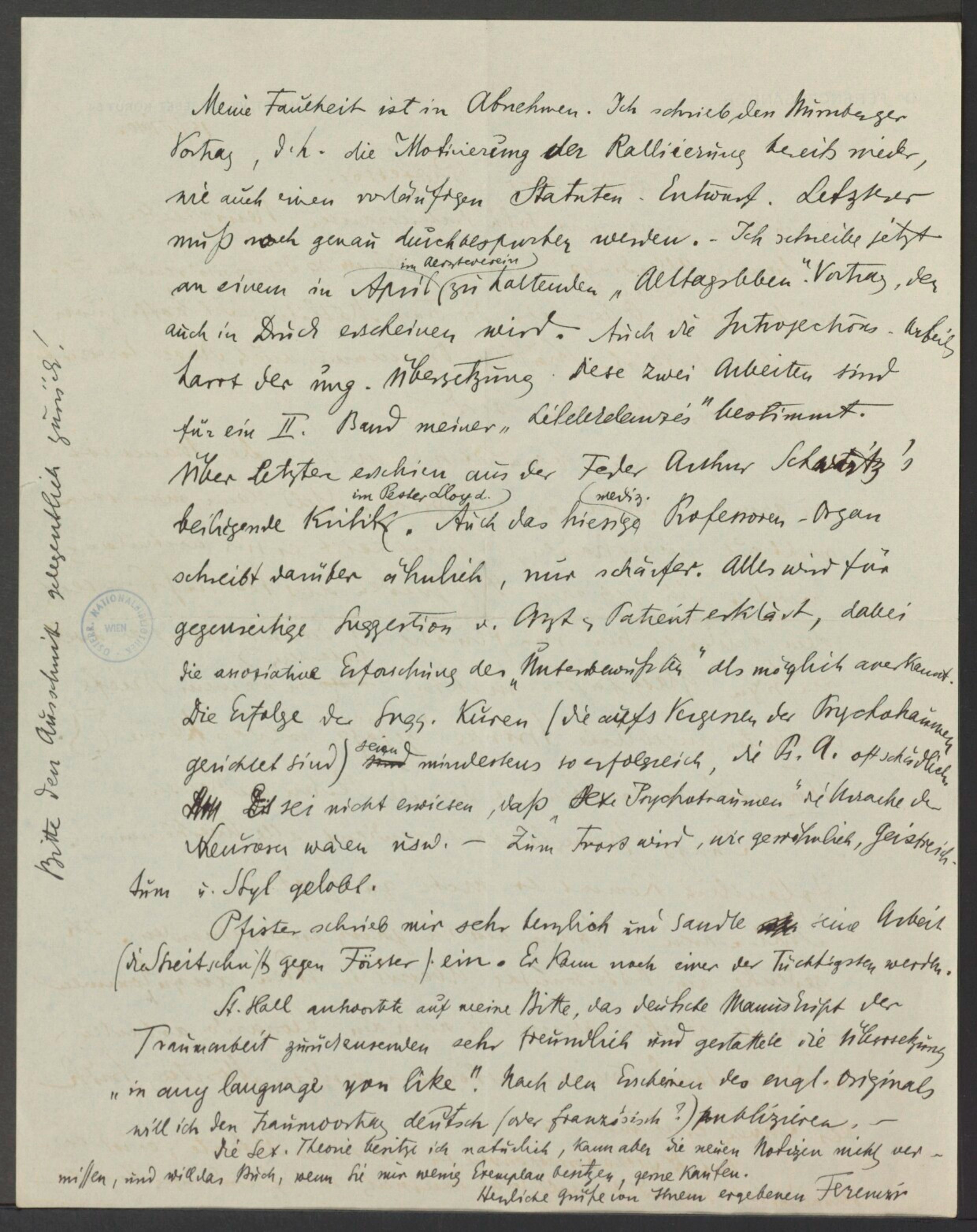 Freud, Sigmund, 1856-1939 [VerfasserIn] ; Ferenczi, Sándor, 1873-1933 [AdressatIn]