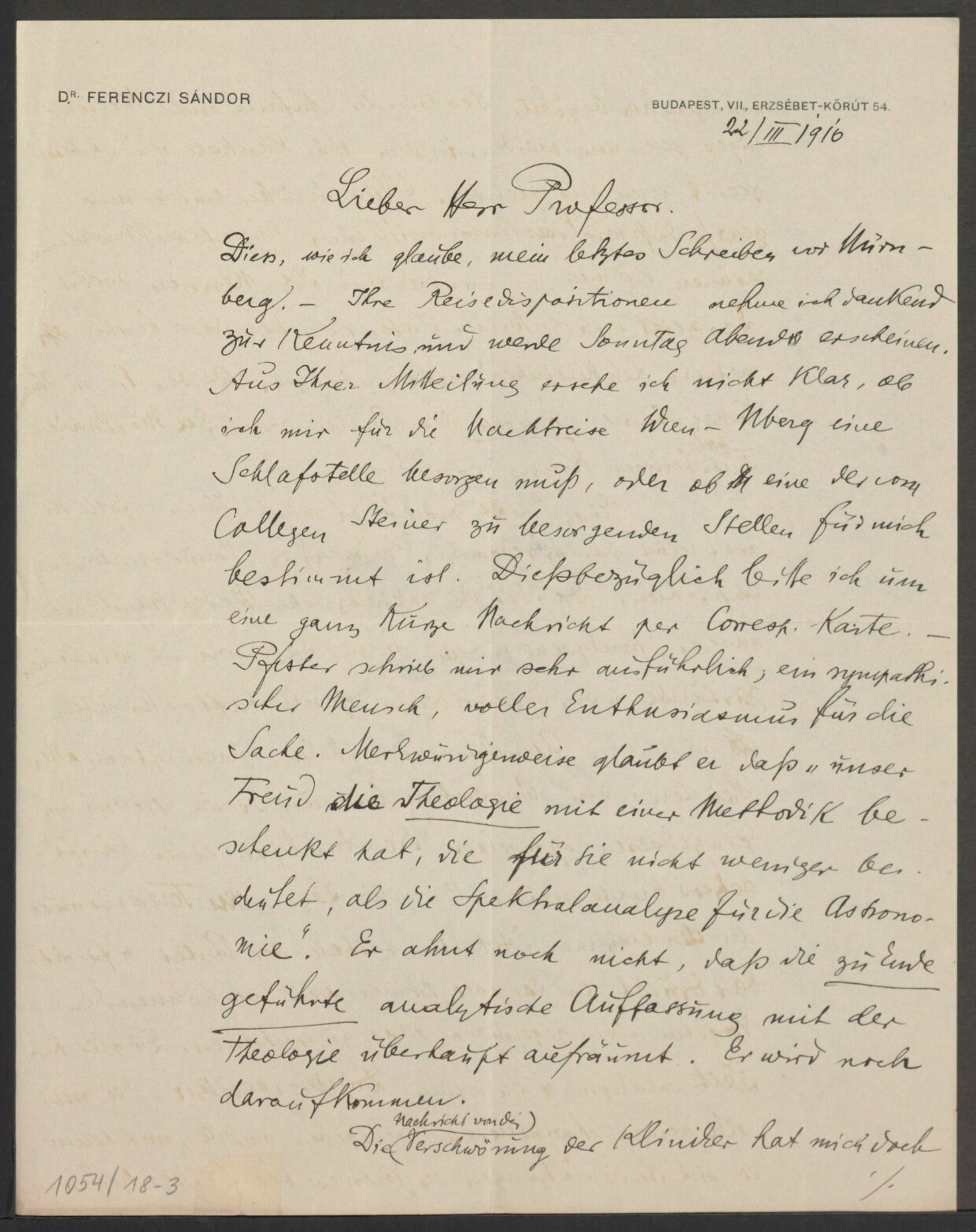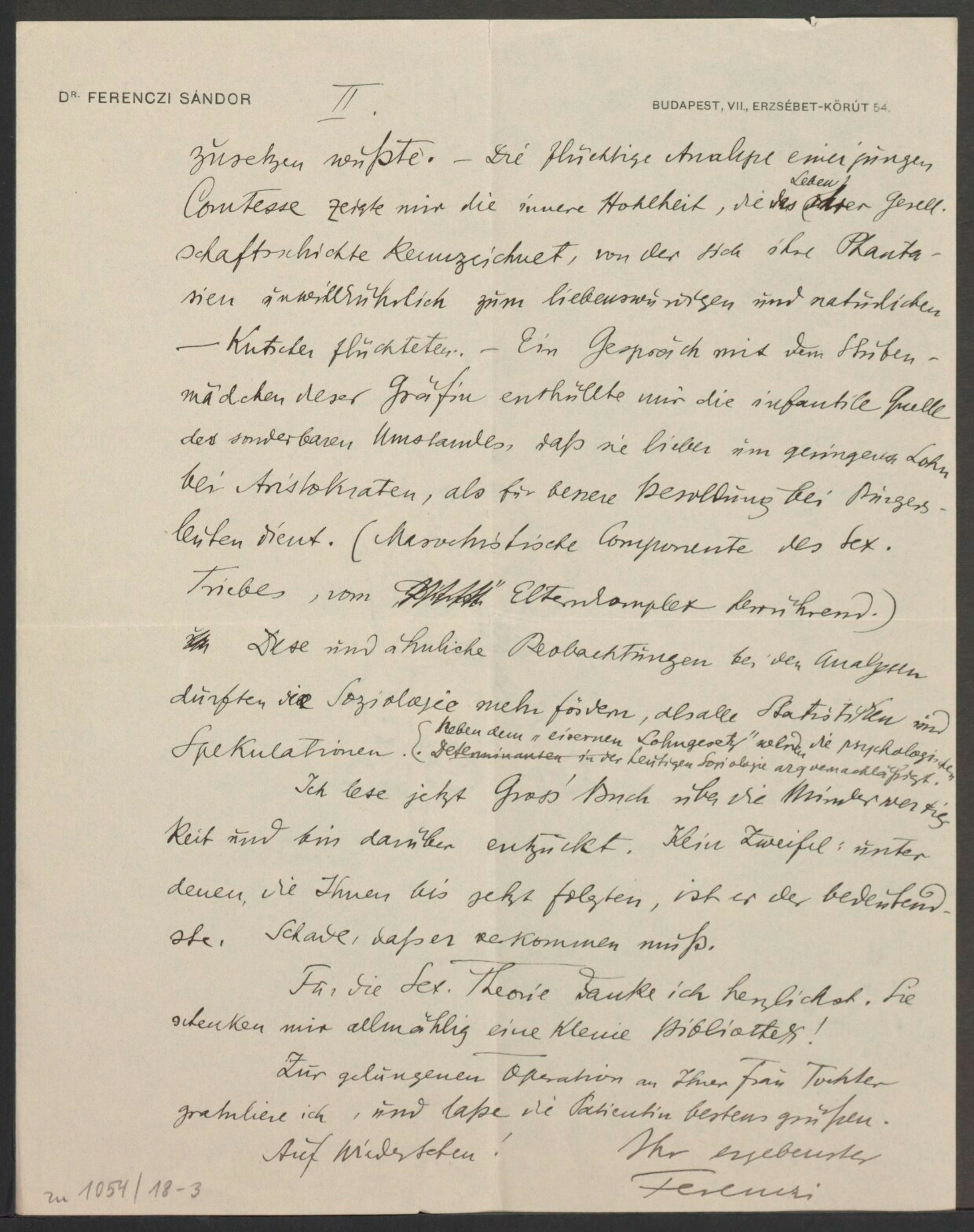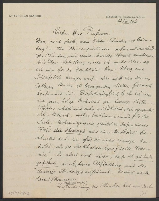 Freud, Sigmund, 1856-1939 [VerfasserIn] ; Ferenczi, Sándor, 1873-1933 [AdressatIn]
