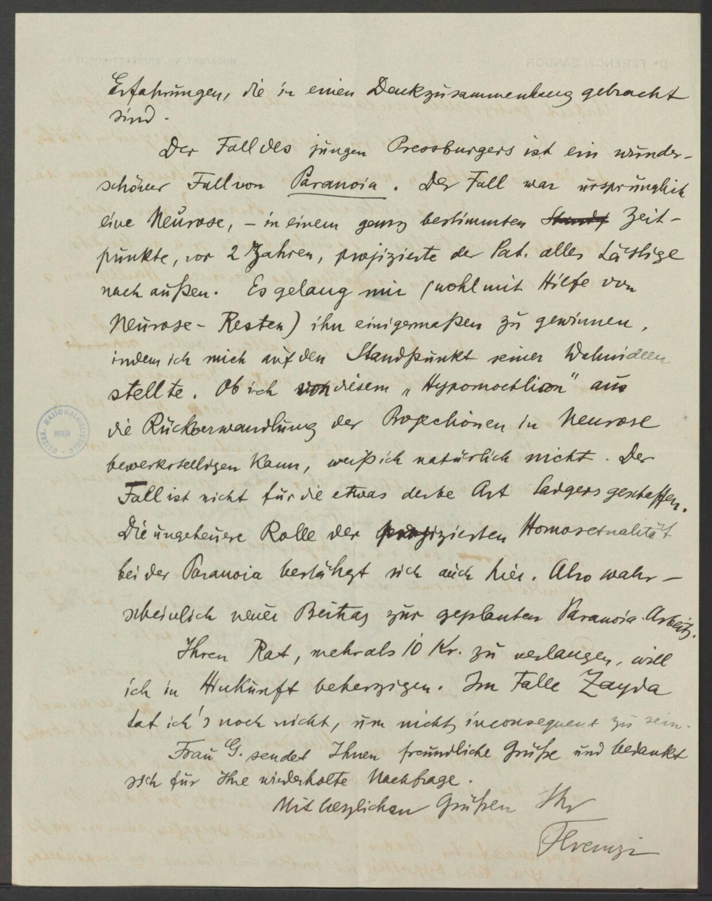 Freud, Sigmund, 1856-1939 [VerfasserIn] ; Ferenczi, Sándor, 1873-1933 [AdressatIn]