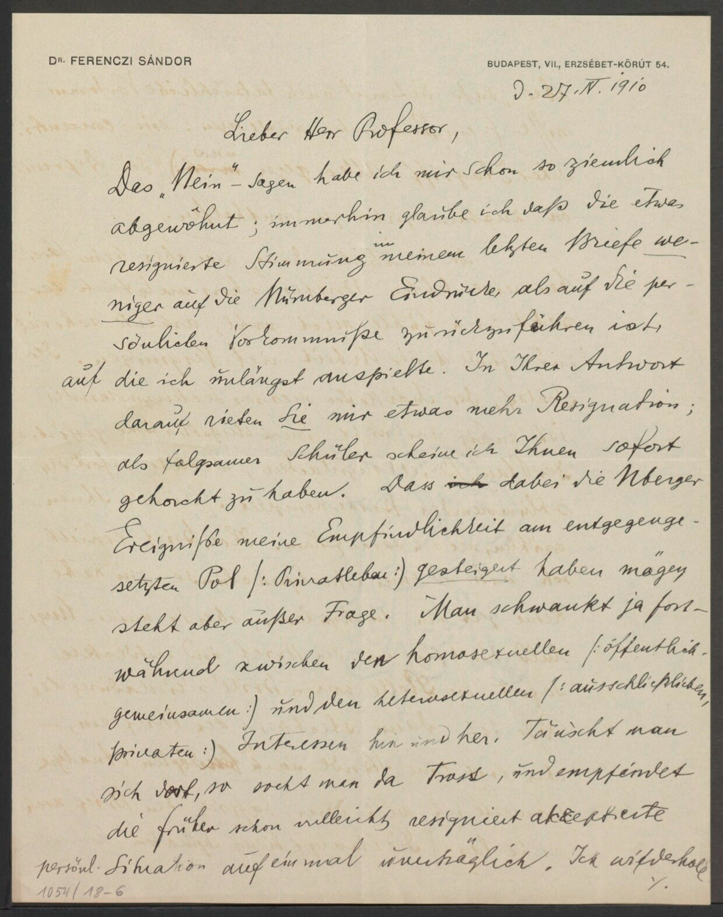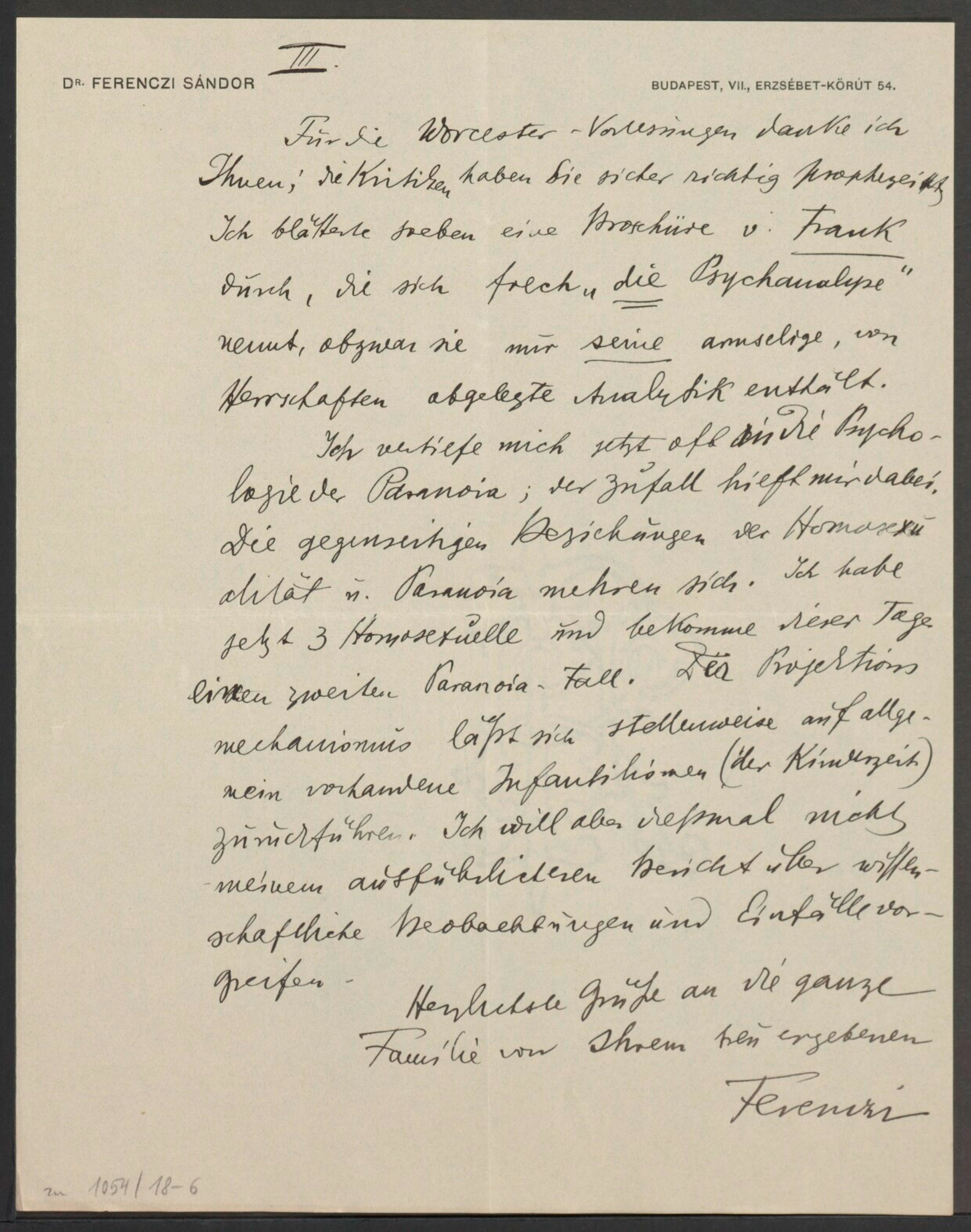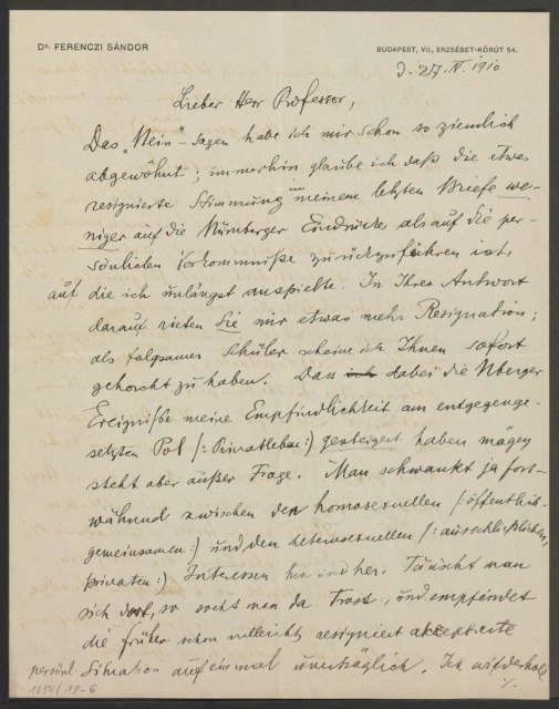 Freud, Sigmund, 1856-1939 [VerfasserIn] ; Ferenczi, Sándor, 1873-1933 [AdressatIn]