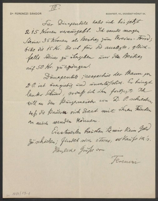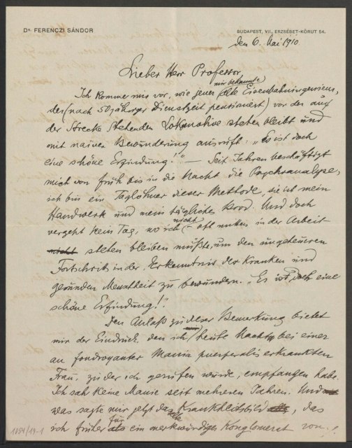 Freud, Sigmund, 1856-1939 [VerfasserIn] ; Ferenczi, Sándor, 1873-1933 [AdressatIn]