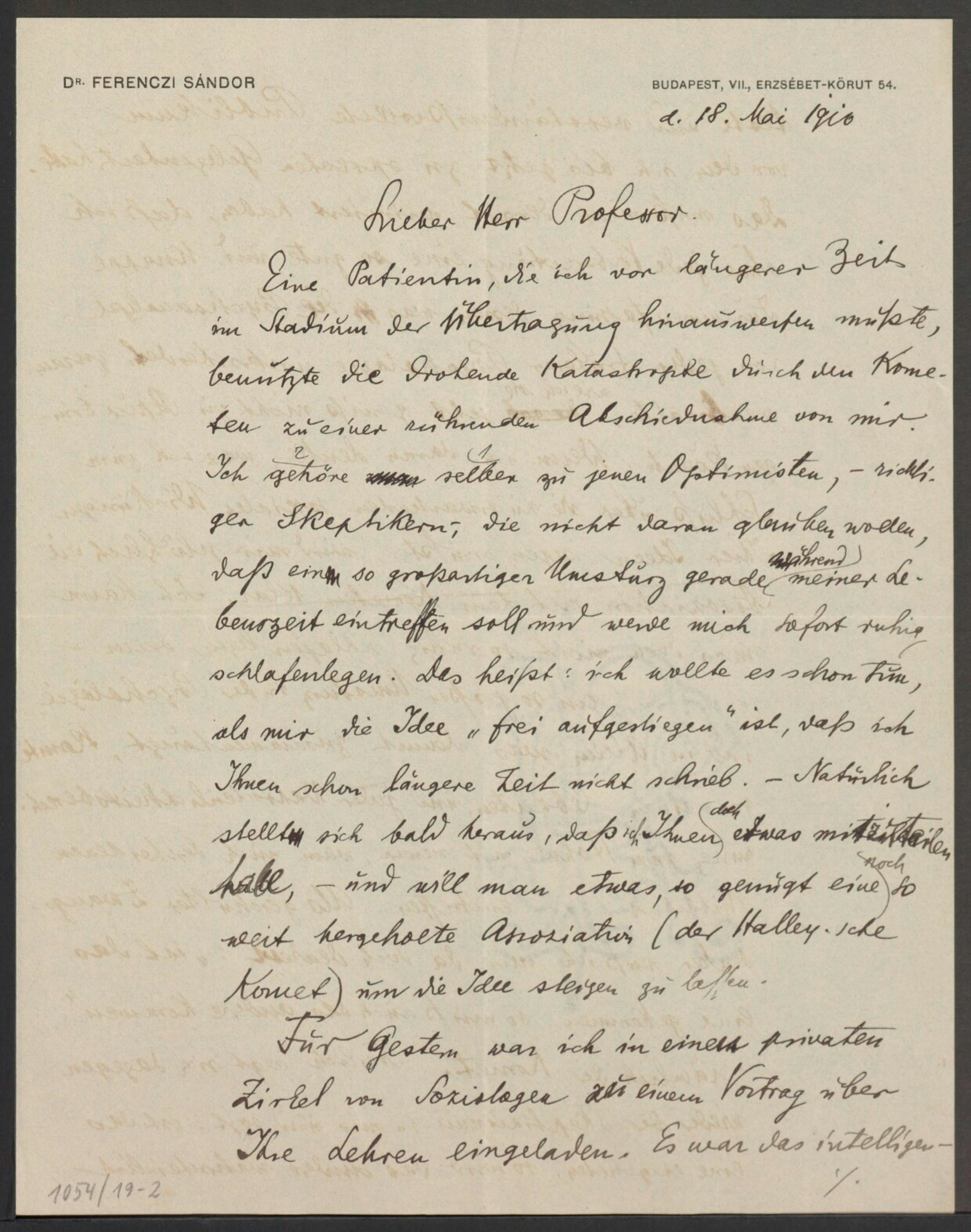 Freud, Sigmund, 1856-1939 [VerfasserIn] ; Ferenczi, Sándor, 1873-1933 [AdressatIn]