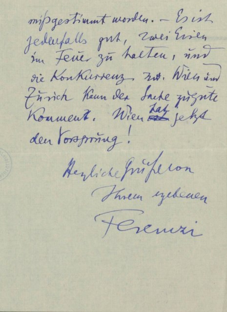 Freud, Sigmund, 1856-1939 [VerfasserIn] ; Ferenczi, Sándor, 1873-1933 [AdressatIn]