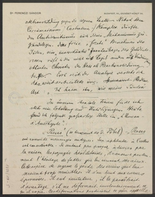 Freud, Sigmund, 1856-1939 [VerfasserIn] ; Ferenczi, Sándor, 1873-1933 [AdressatIn]
