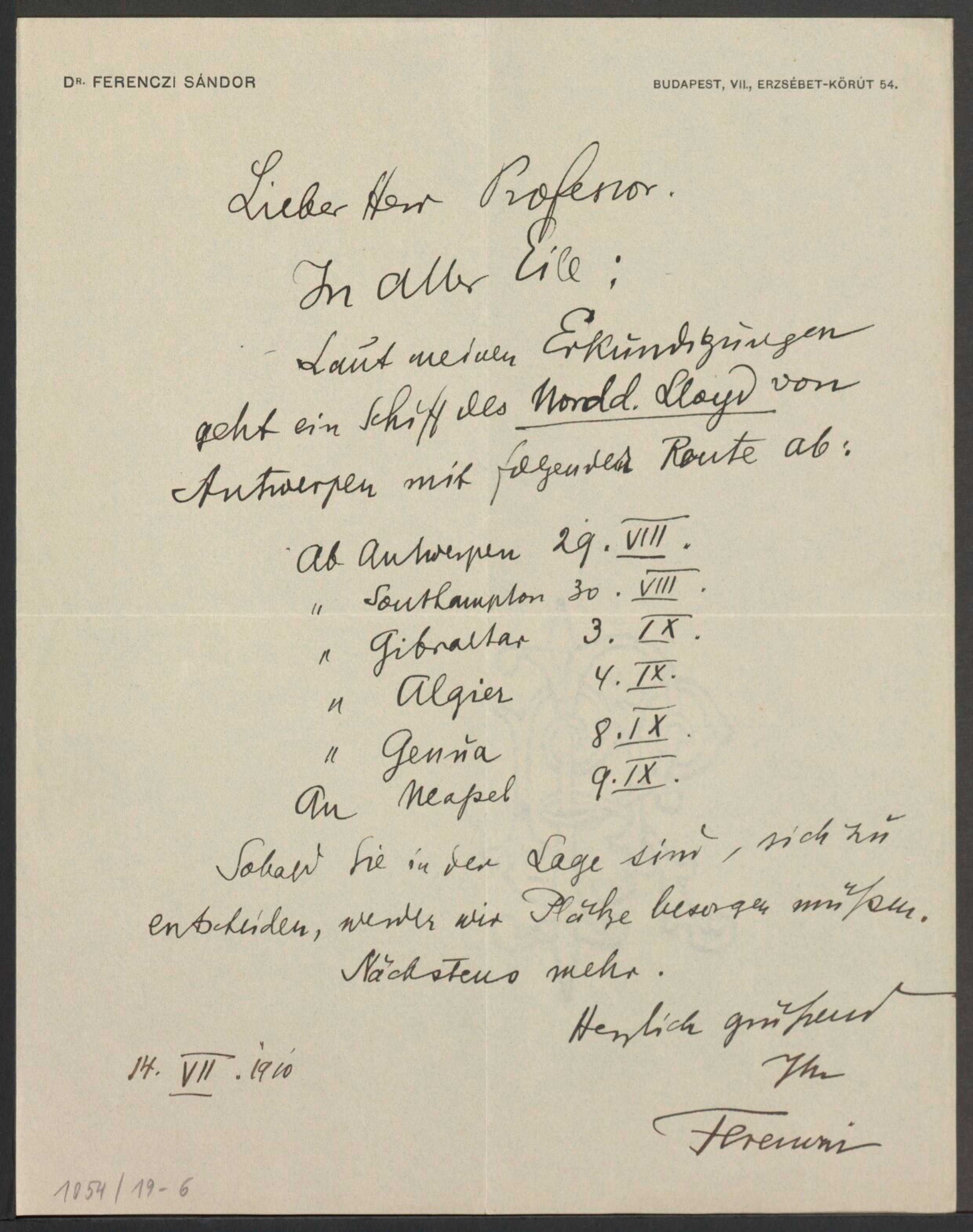 Freud, Sigmund, 1856-1939 [VerfasserIn] ; Ferenczi, Sándor, 1873-1933 [AdressatIn]