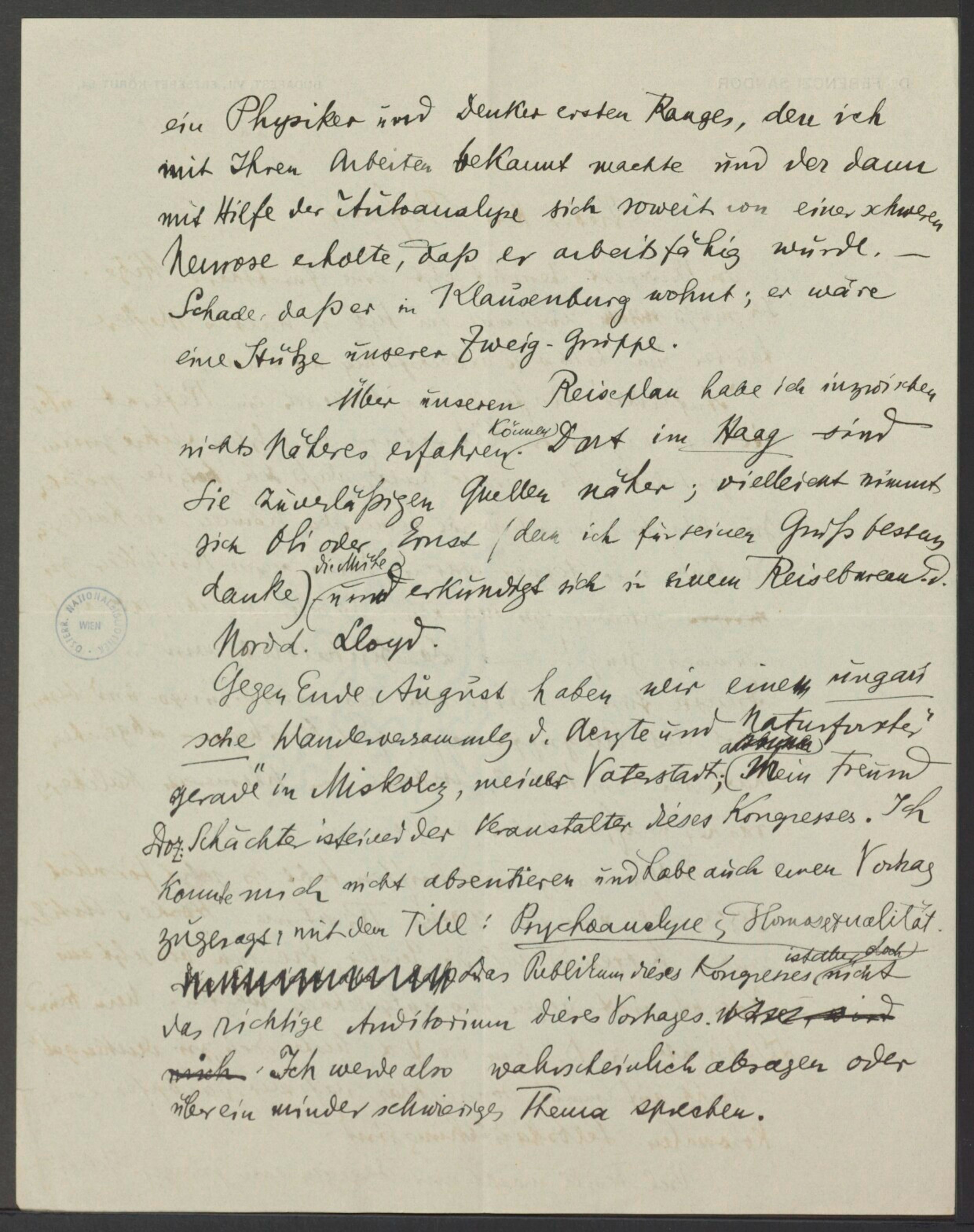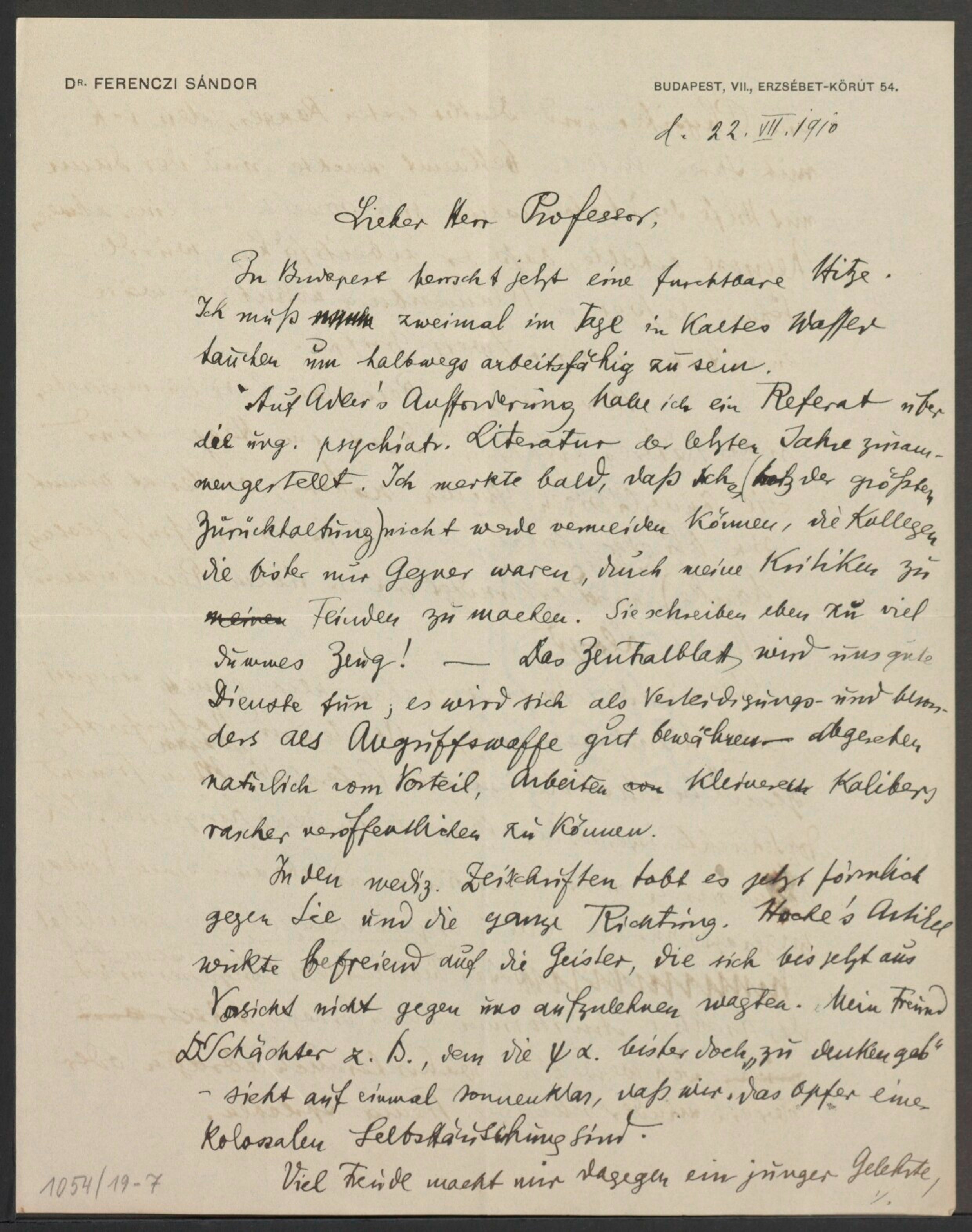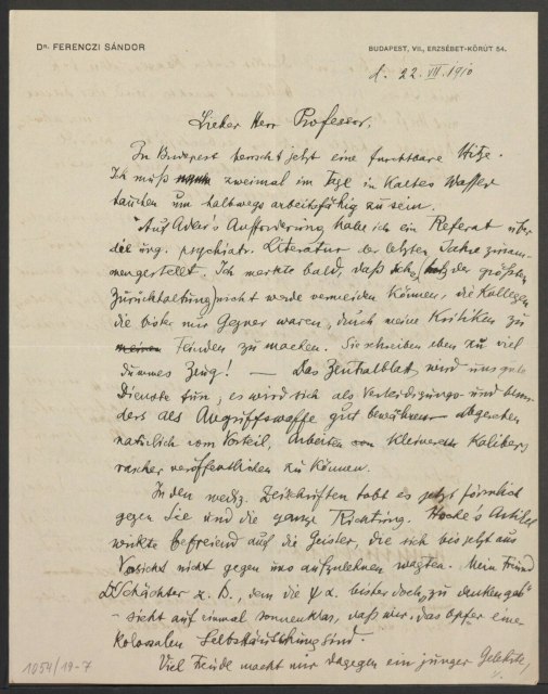 Freud, Sigmund, 1856-1939 [VerfasserIn] ; Ferenczi, Sándor, 1873-1933 [AdressatIn]