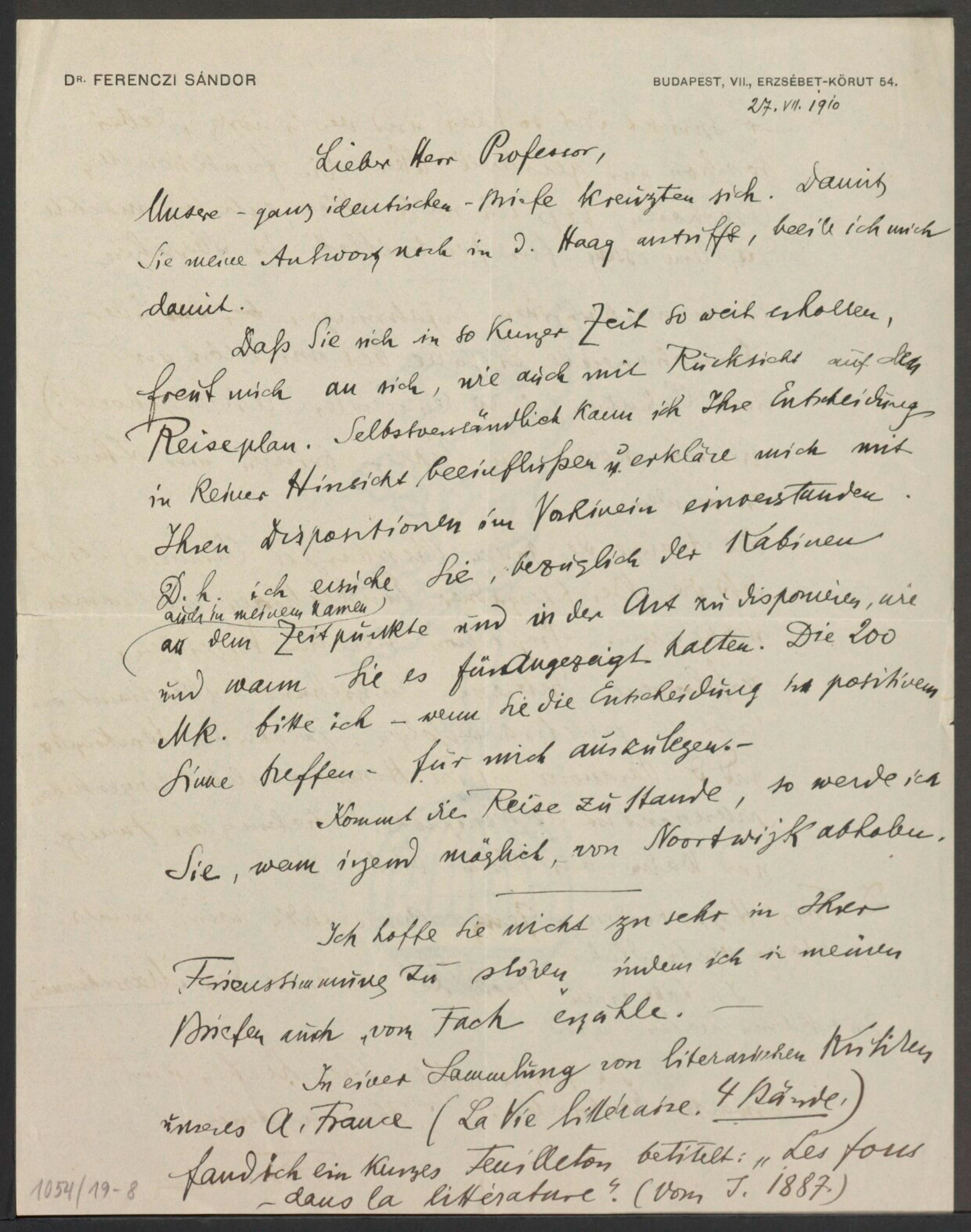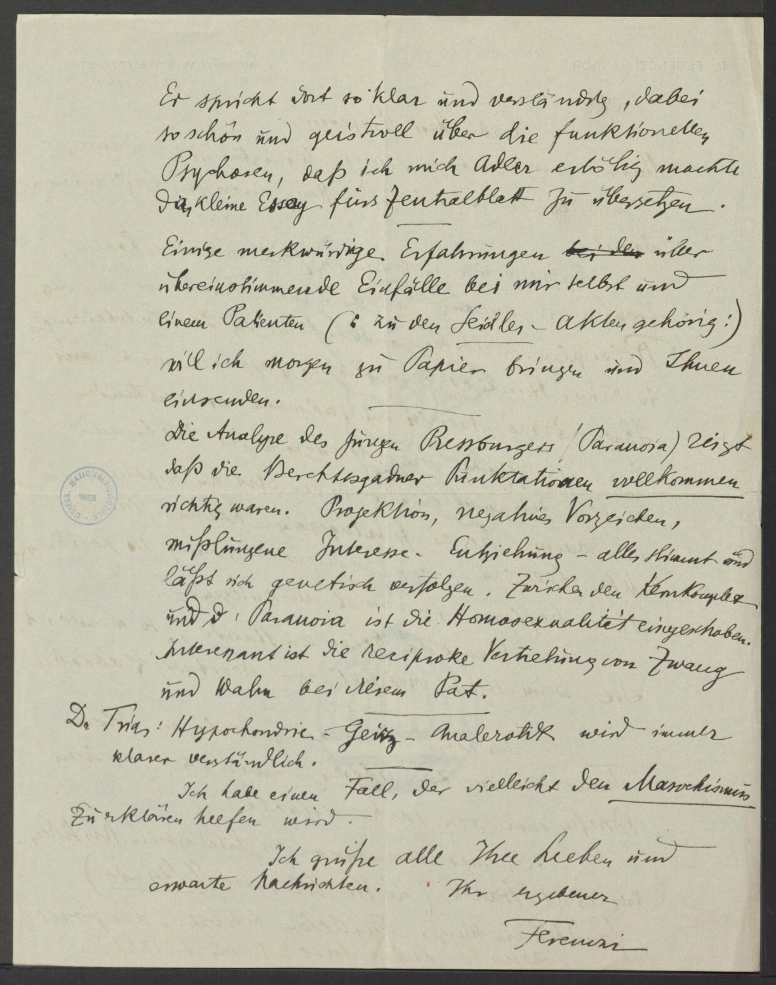 Freud, Sigmund, 1856-1939 [VerfasserIn] ; Ferenczi, Sándor, 1873-1933 [AdressatIn]