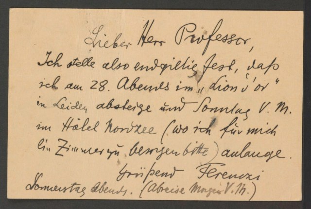 Freud, Sigmund, 1856-1939 [VerfasserIn] ; Ferenczi, Sándor, 1873-1933 [AdressatIn]