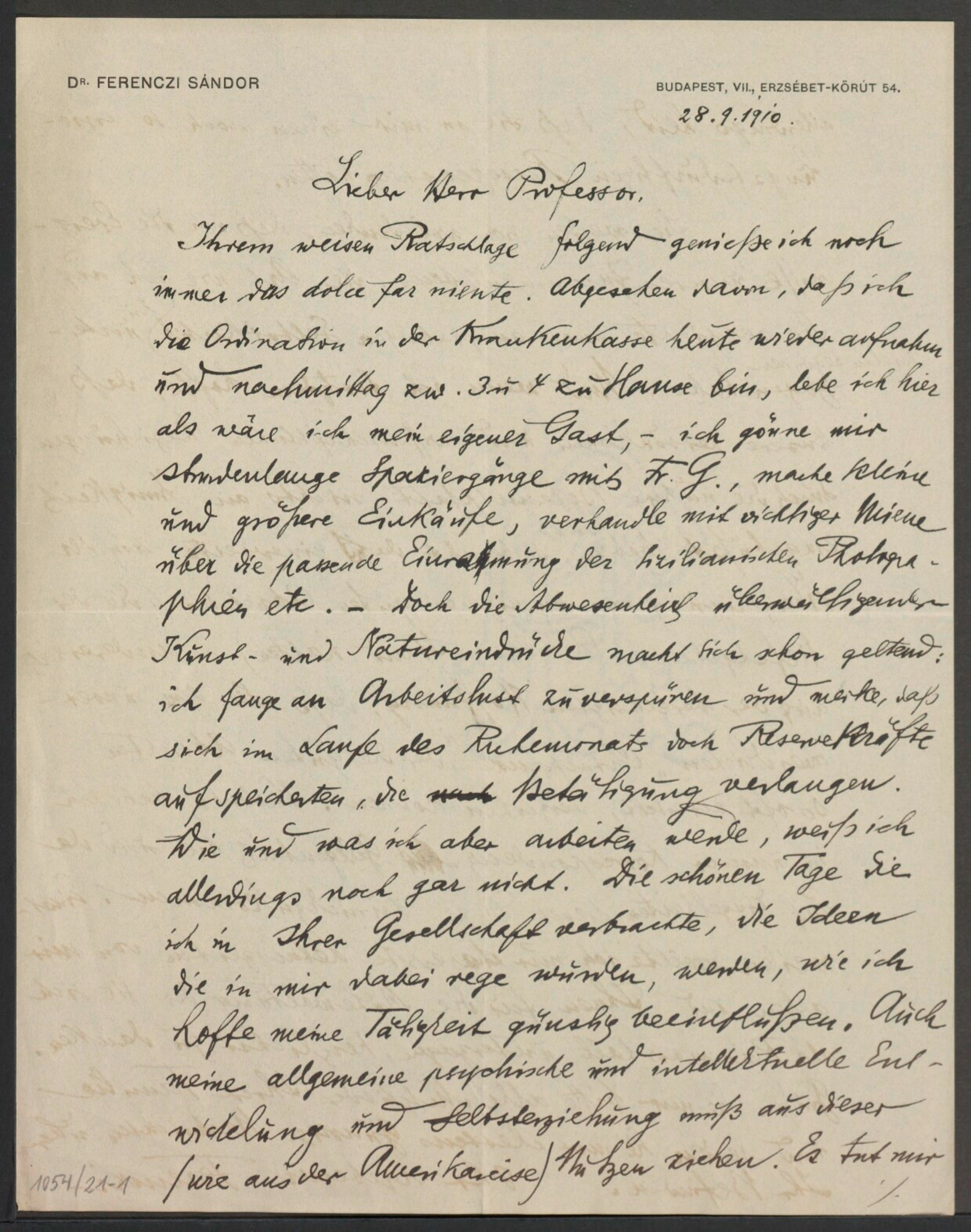Freud, Sigmund, 1856-1939 [VerfasserIn] ; Ferenczi, Sándor, 1873-1933 [AdressatIn]