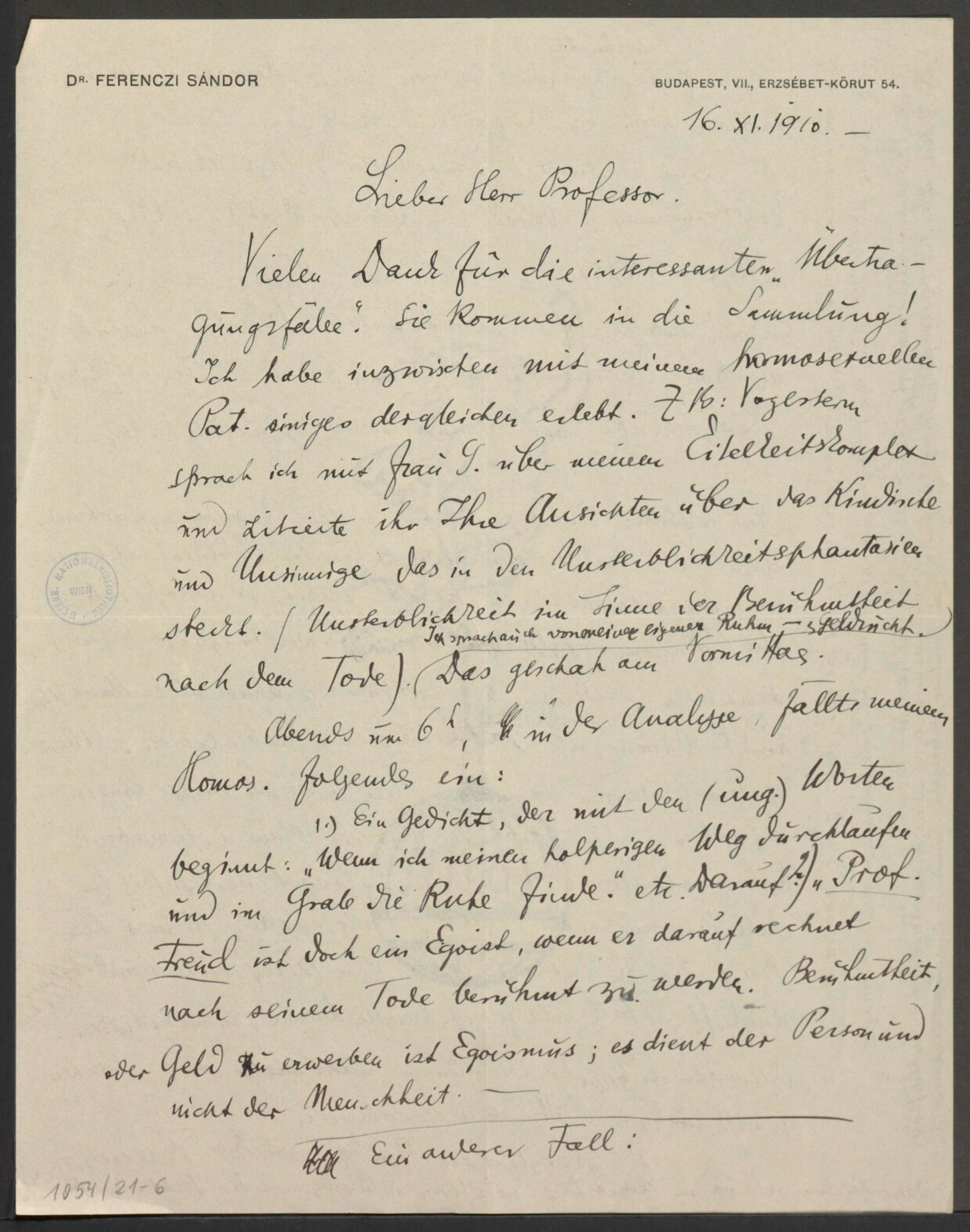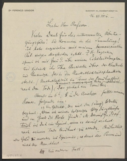 Freud, Sigmund, 1856-1939 [VerfasserIn] ; Ferenczi, Sándor, 1873-1933 [AdressatIn]