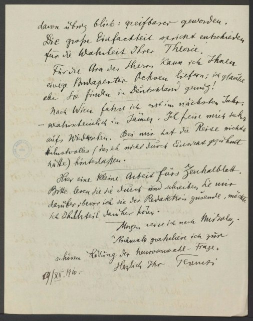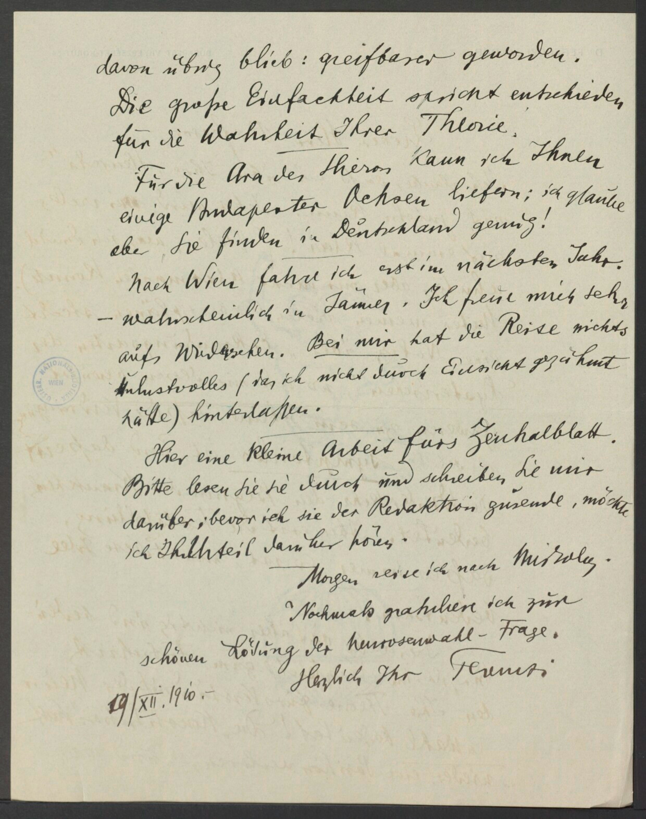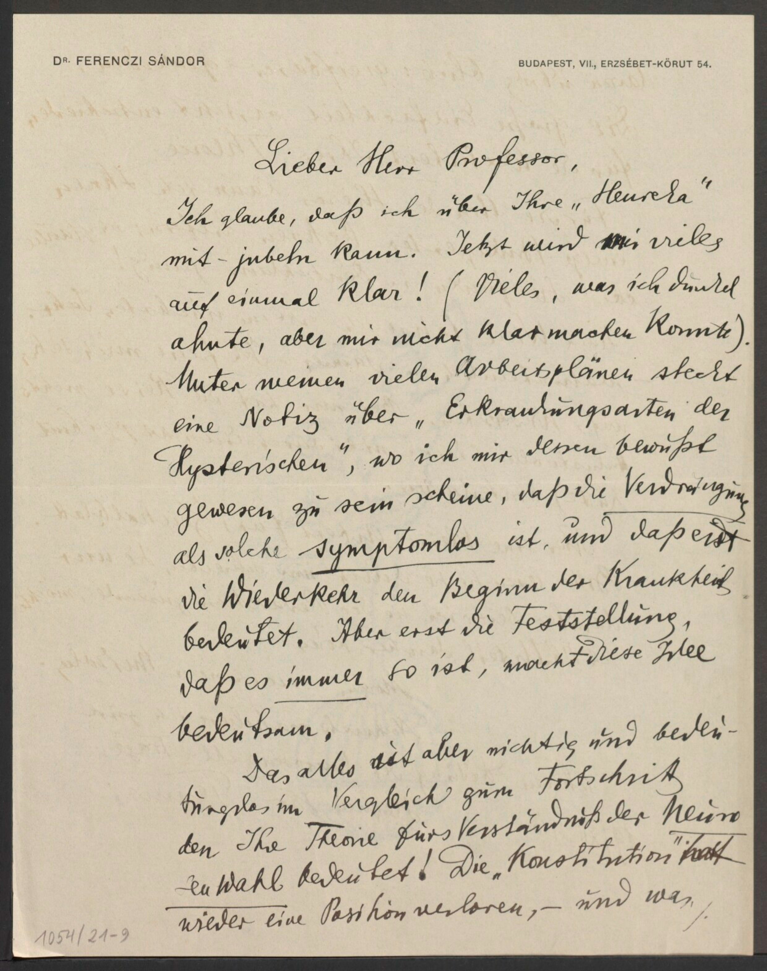 Freud, Sigmund, 1856-1939 [VerfasserIn] ; Ferenczi, Sándor, 1873-1933 [AdressatIn]