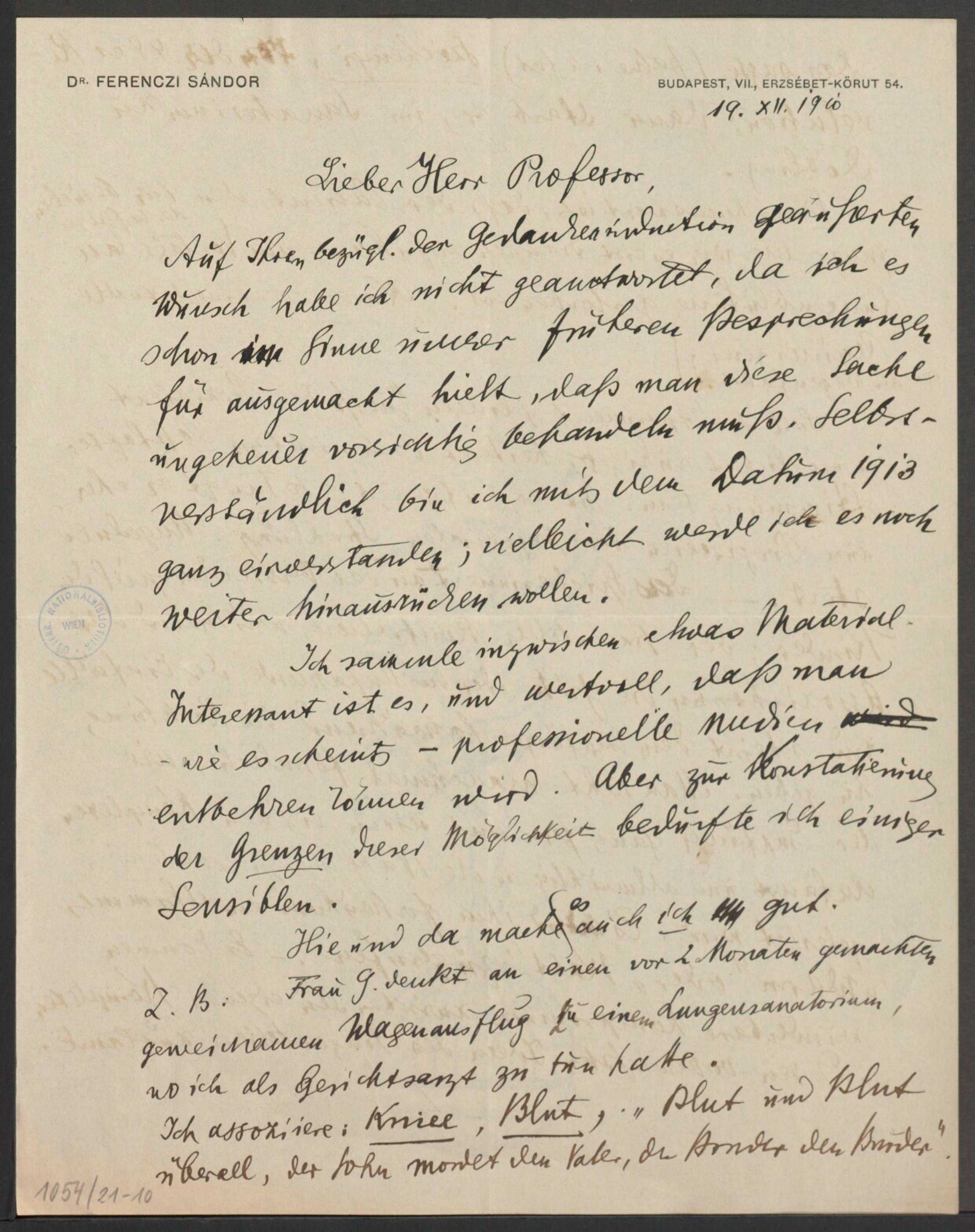 Freud, Sigmund, 1856-1939 [VerfasserIn] ; Ferenczi, Sándor, 1873-1933 [AdressatIn]
