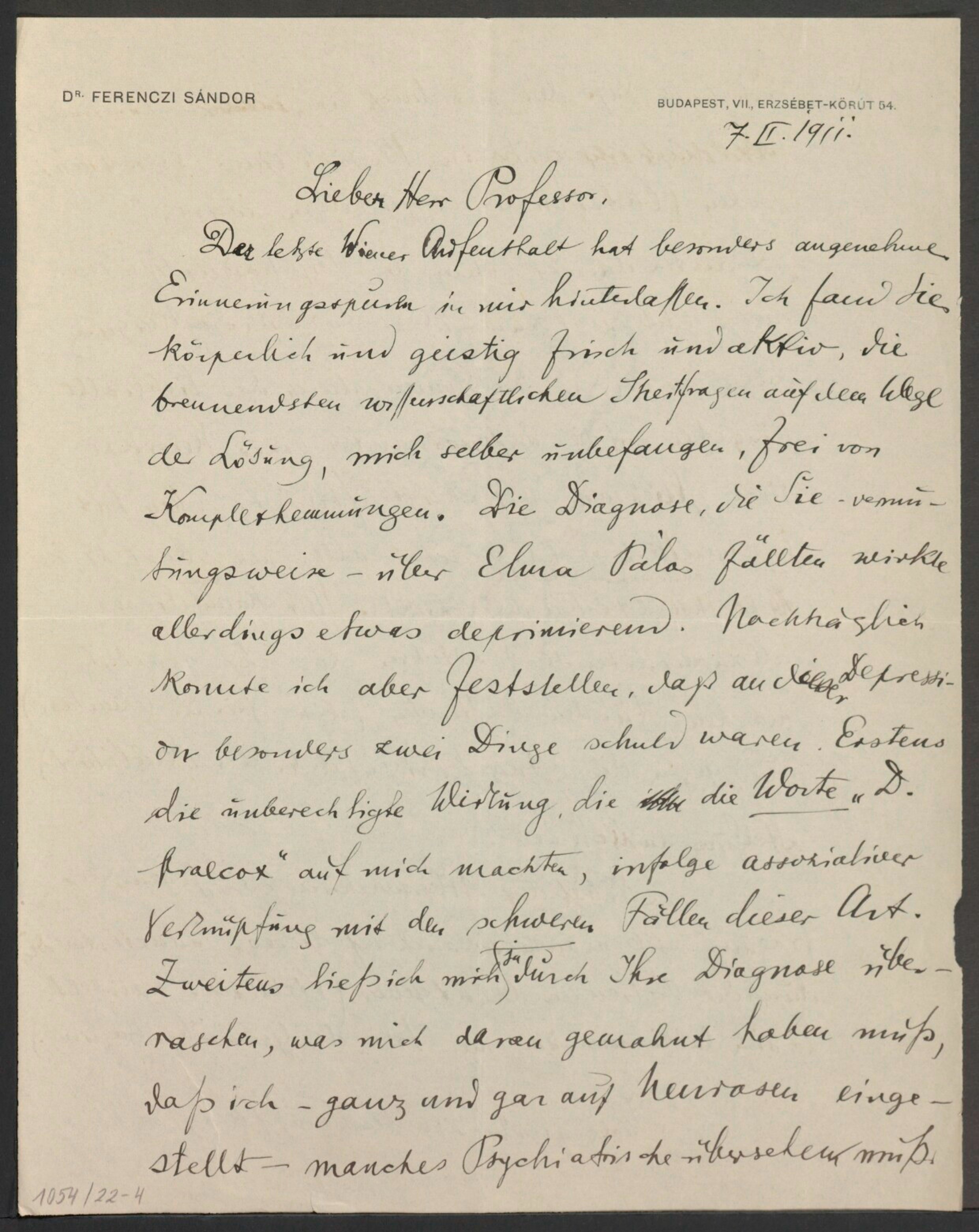 Freud, Sigmund, 1856-1939 [VerfasserIn] ; Ferenczi, Sándor, 1873-1933 [AdressatIn]