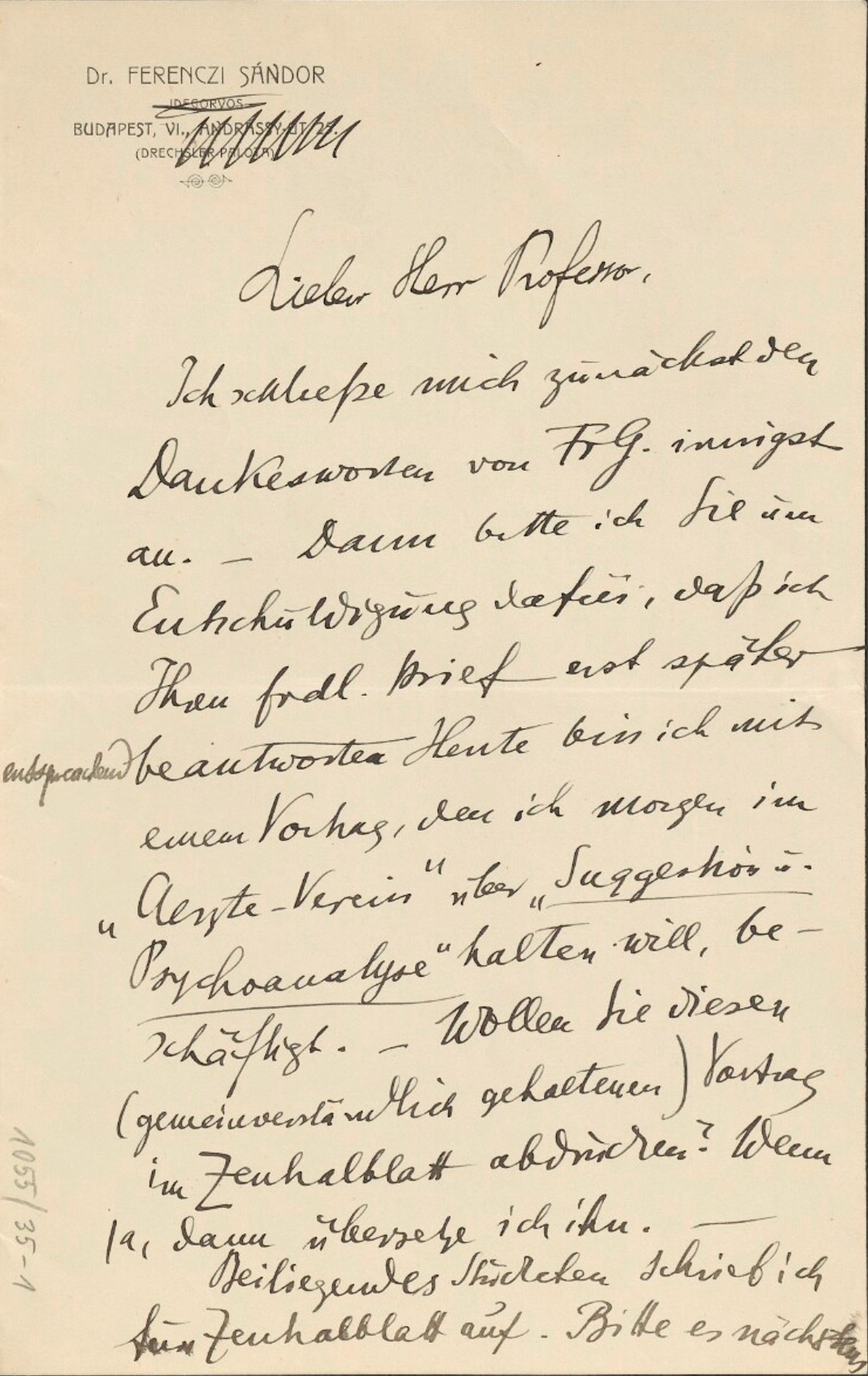Freud, Sigmund, 1856-1939 [VerfasserIn] ; Ferenczi, Sándor, 1873-1933 [AdressatIn]