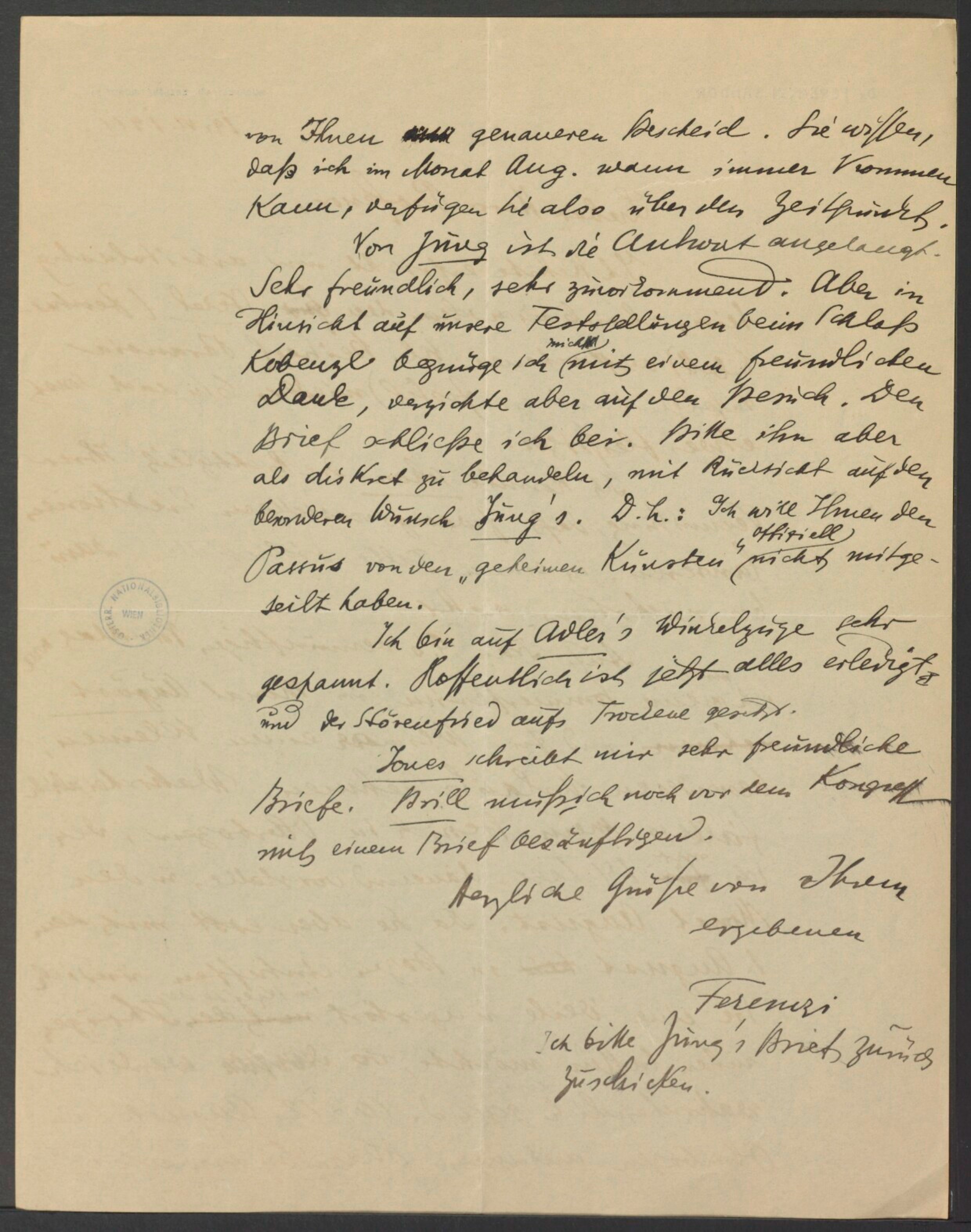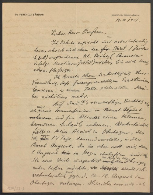 Freud, Sigmund, 1856-1939 [VerfasserIn] ; Ferenczi, Sándor, 1873-1933 [AdressatIn]