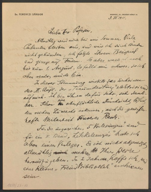 Freud, Sigmund, 1856-1939 [VerfasserIn] ; Ferenczi, Sándor, 1873-1933 [AdressatIn]
