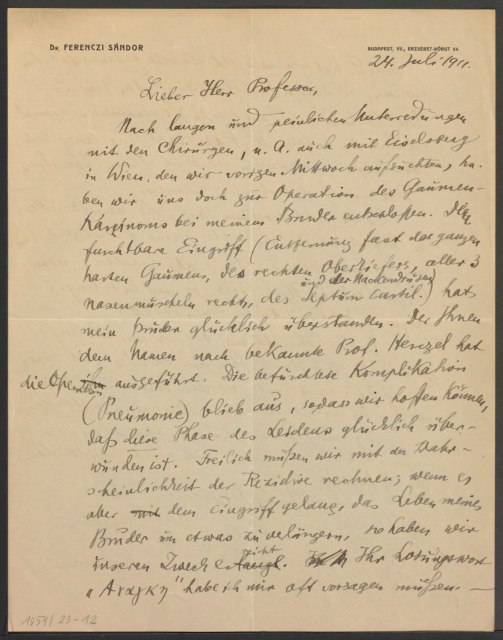 Freud, Sigmund, 1856-1939 [VerfasserIn] ; Ferenczi, Sándor, 1873-1933 [AdressatIn]
