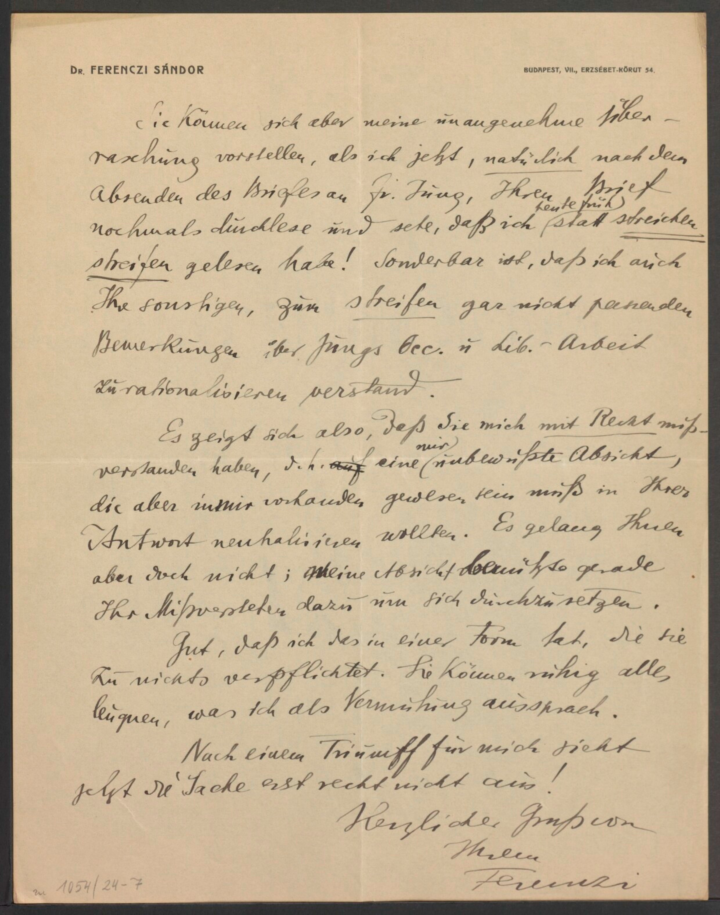 Freud, Sigmund, 1856-1939 [VerfasserIn] ; Ferenczi, Sándor, 1873-1933 [AdressatIn]