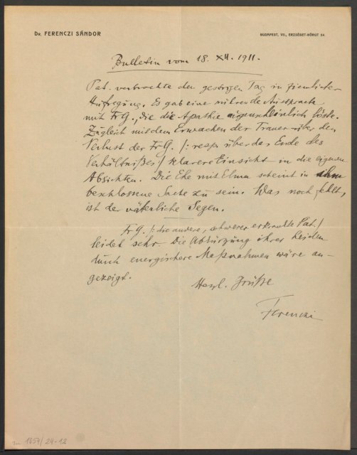 Freud, Sigmund, 1856-1939 [VerfasserIn] ; Ferenczi, Sándor, 1873-1933 [AdressatIn]