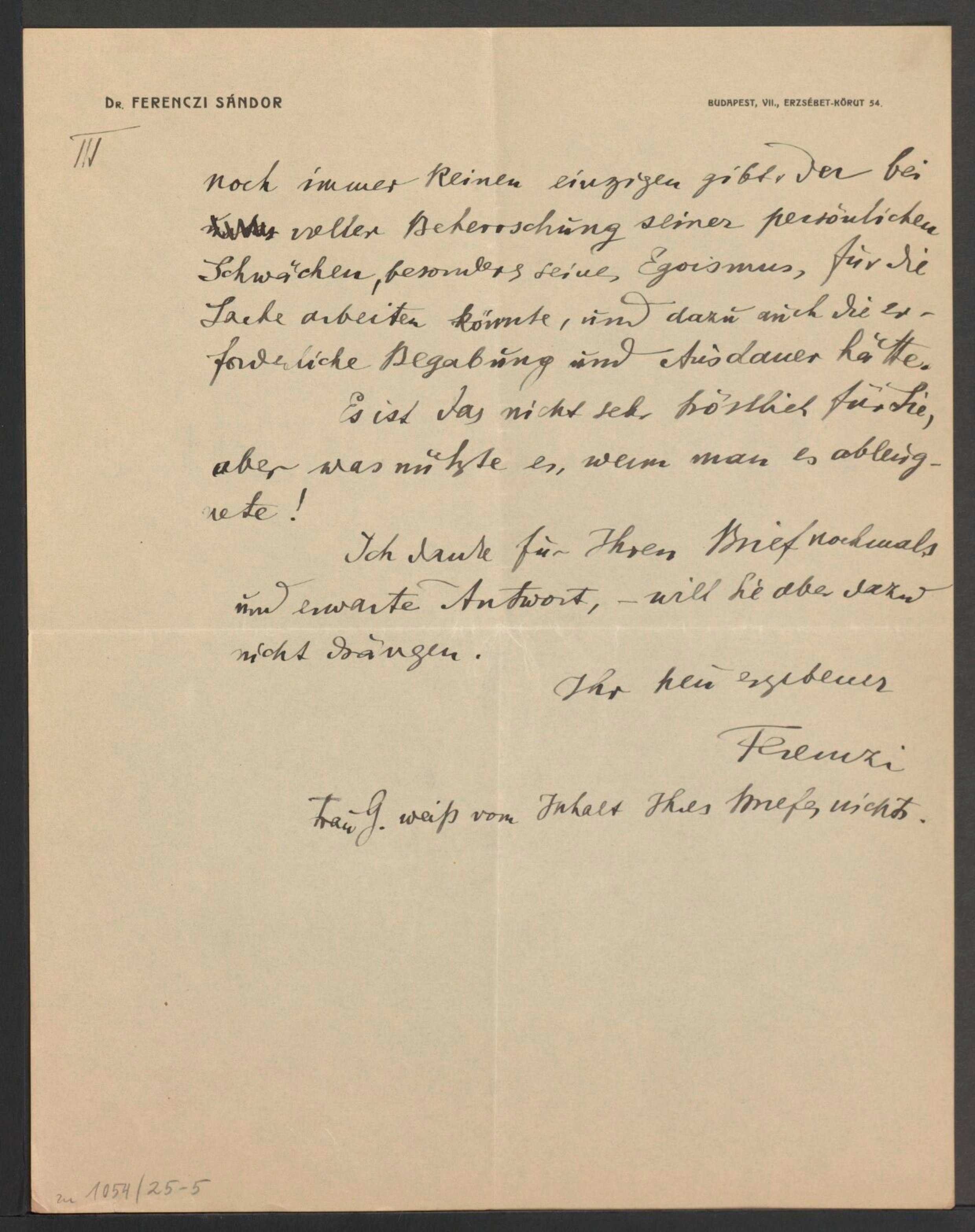 Freud, Sigmund, 1856-1939 [VerfasserIn] ; Ferenczi, Sándor, 1873-1933 [AdressatIn]