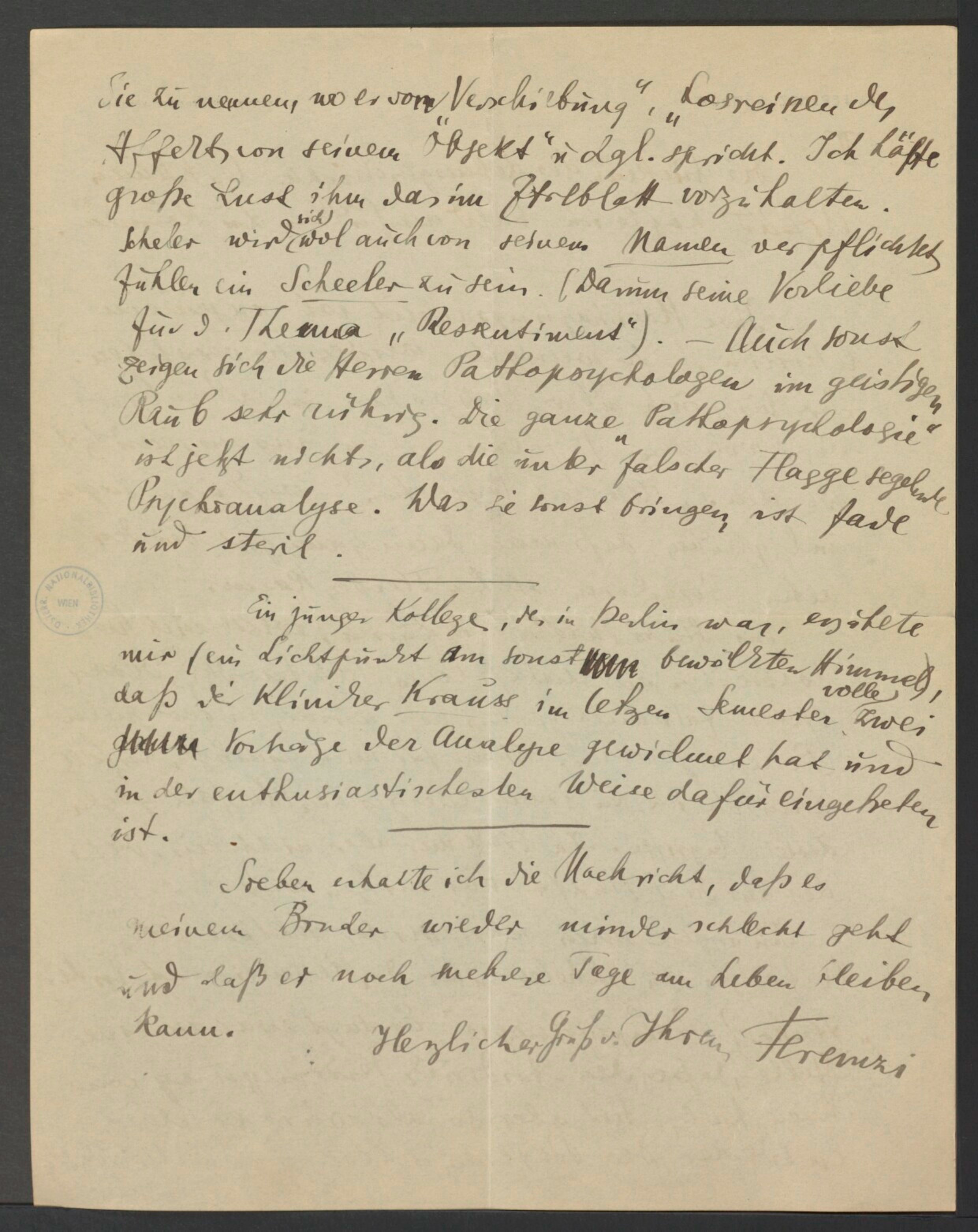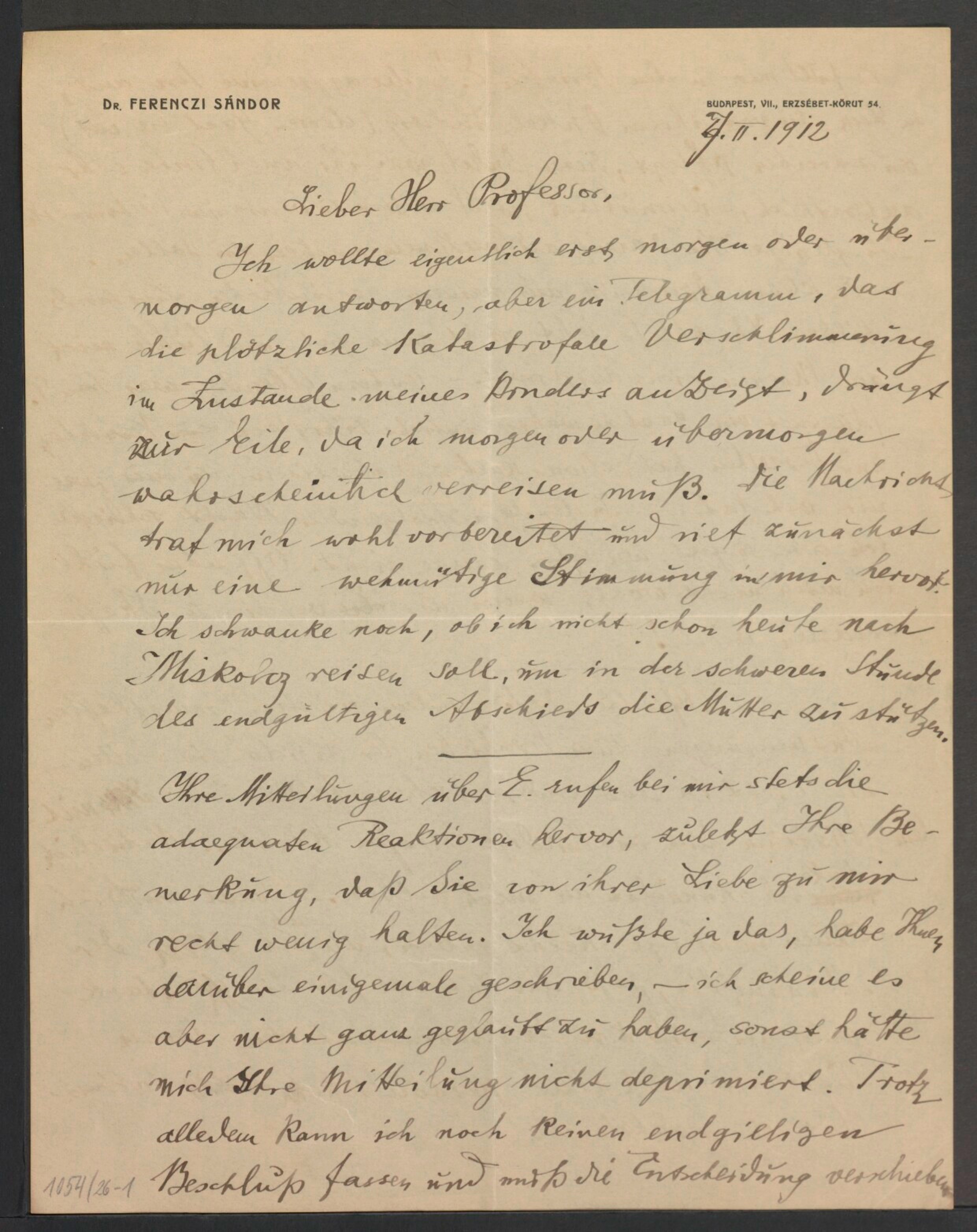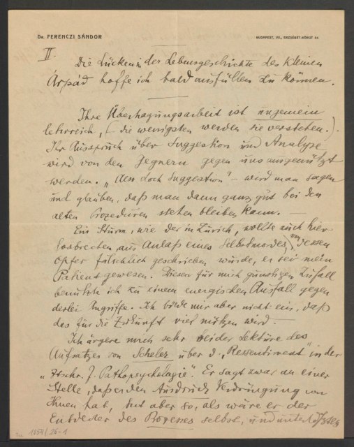 Freud, Sigmund, 1856-1939 [VerfasserIn] ; Ferenczi, Sándor, 1873-1933 [AdressatIn]