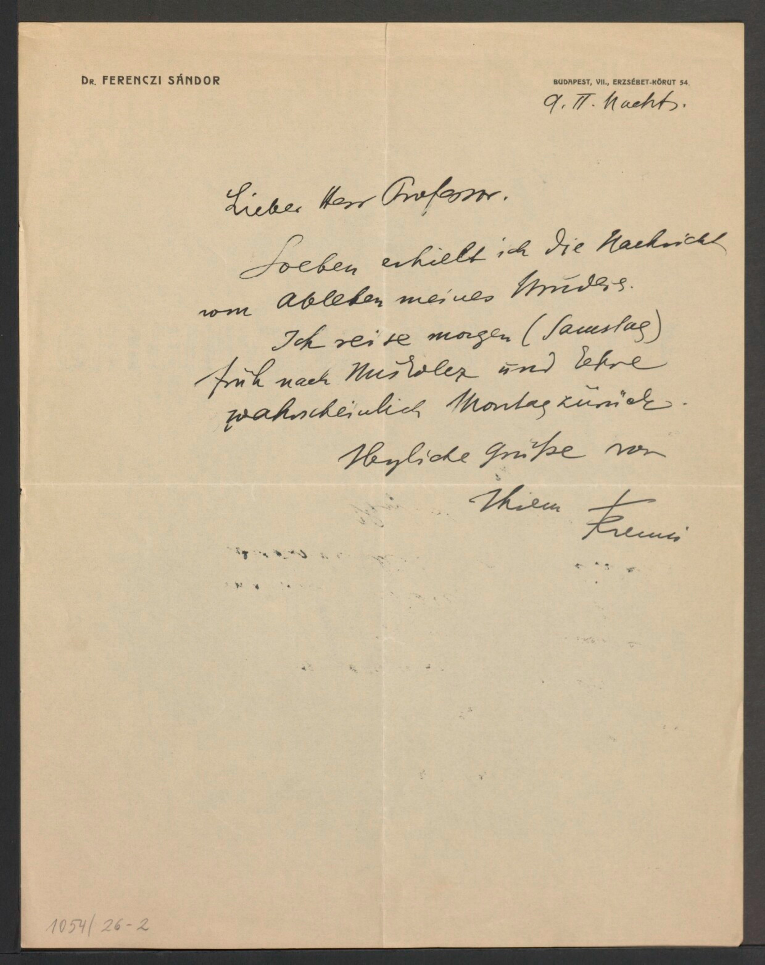 Freud, Sigmund, 1856-1939 [VerfasserIn] ; Ferenczi, Sándor, 1873-1933 [AdressatIn]