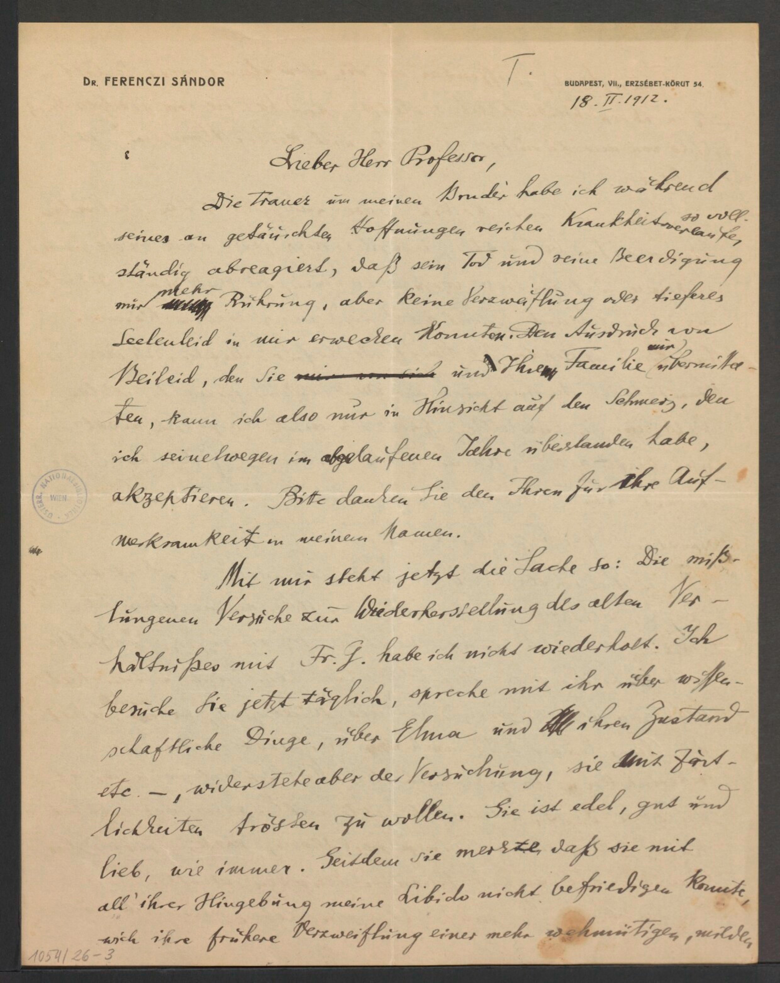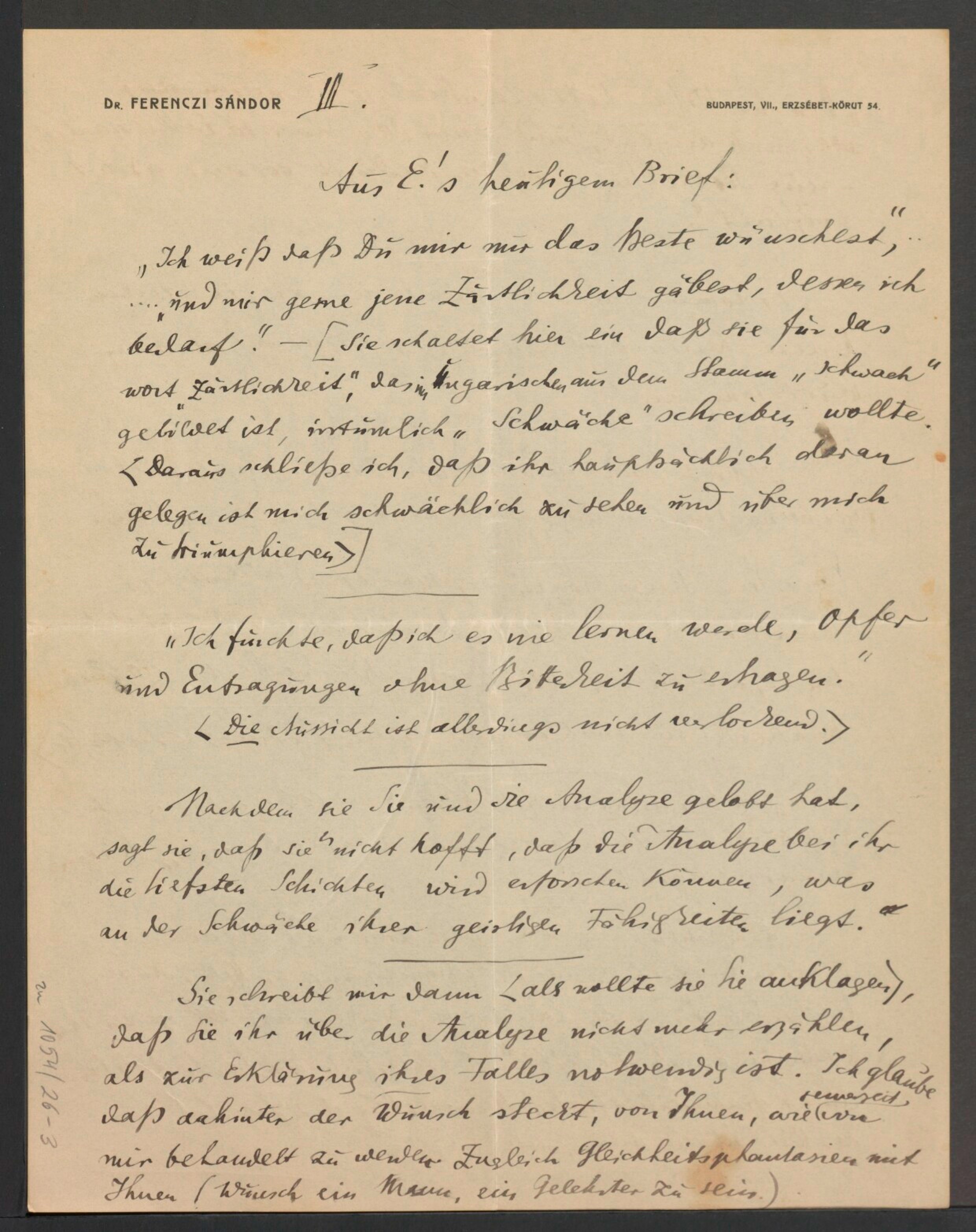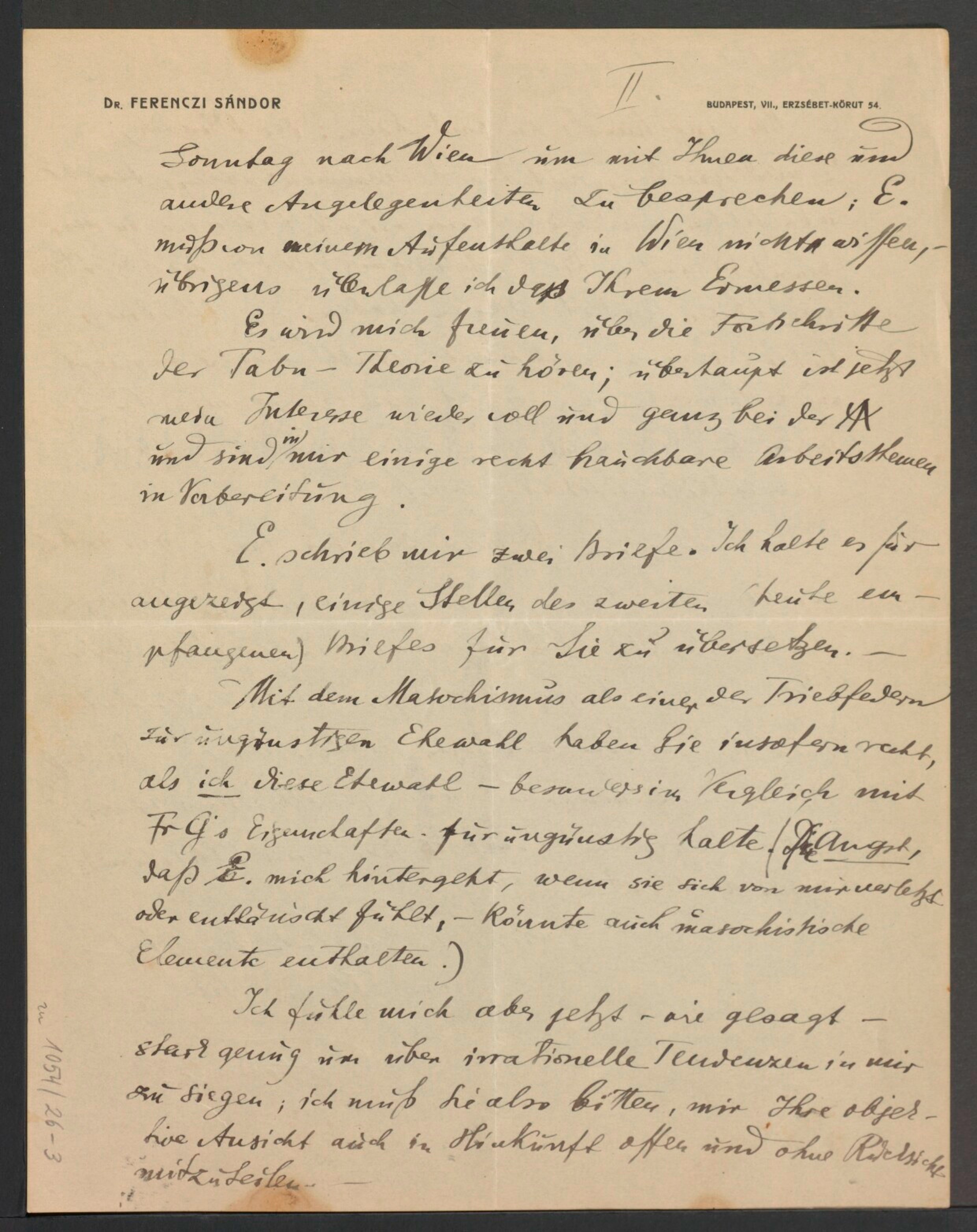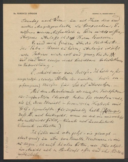 Freud, Sigmund, 1856-1939 [VerfasserIn] ; Ferenczi, Sándor, 1873-1933 [AdressatIn]