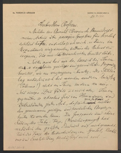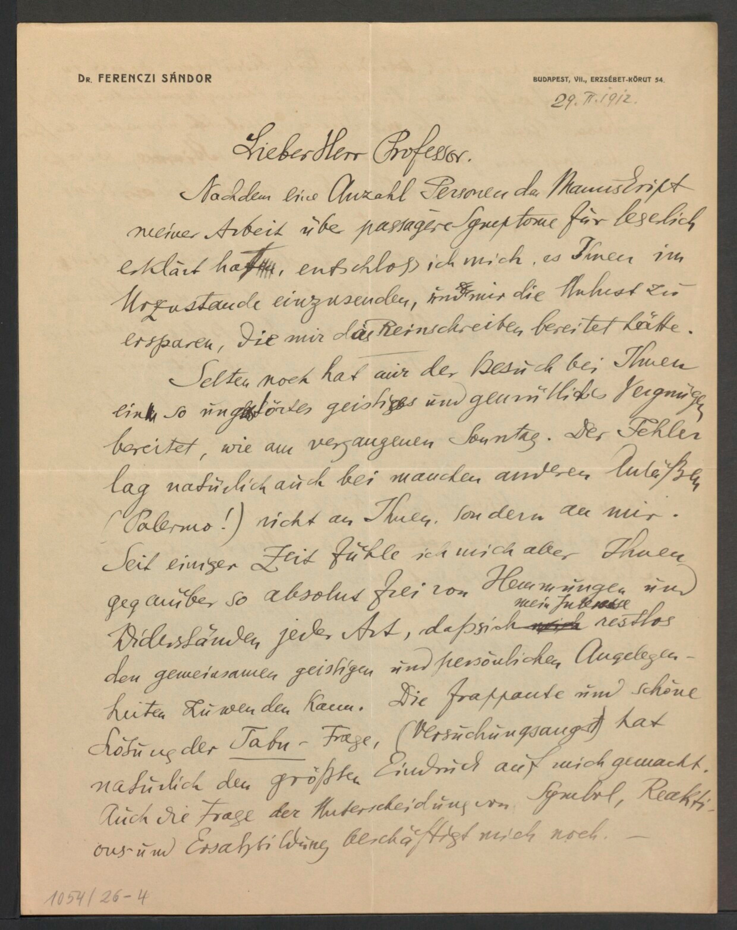 Freud, Sigmund, 1856-1939 [VerfasserIn] ; Ferenczi, Sándor, 1873-1933 [AdressatIn]