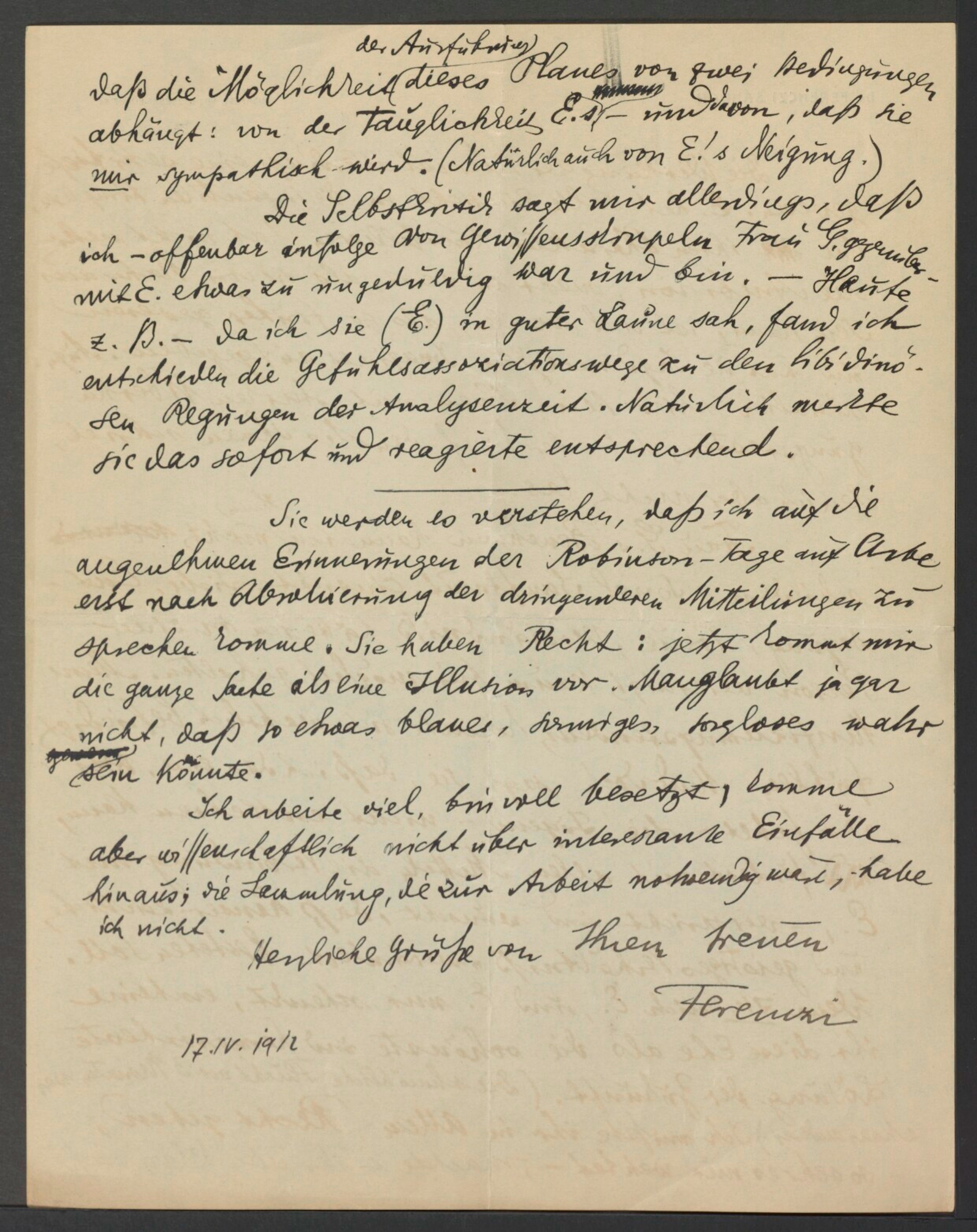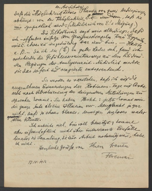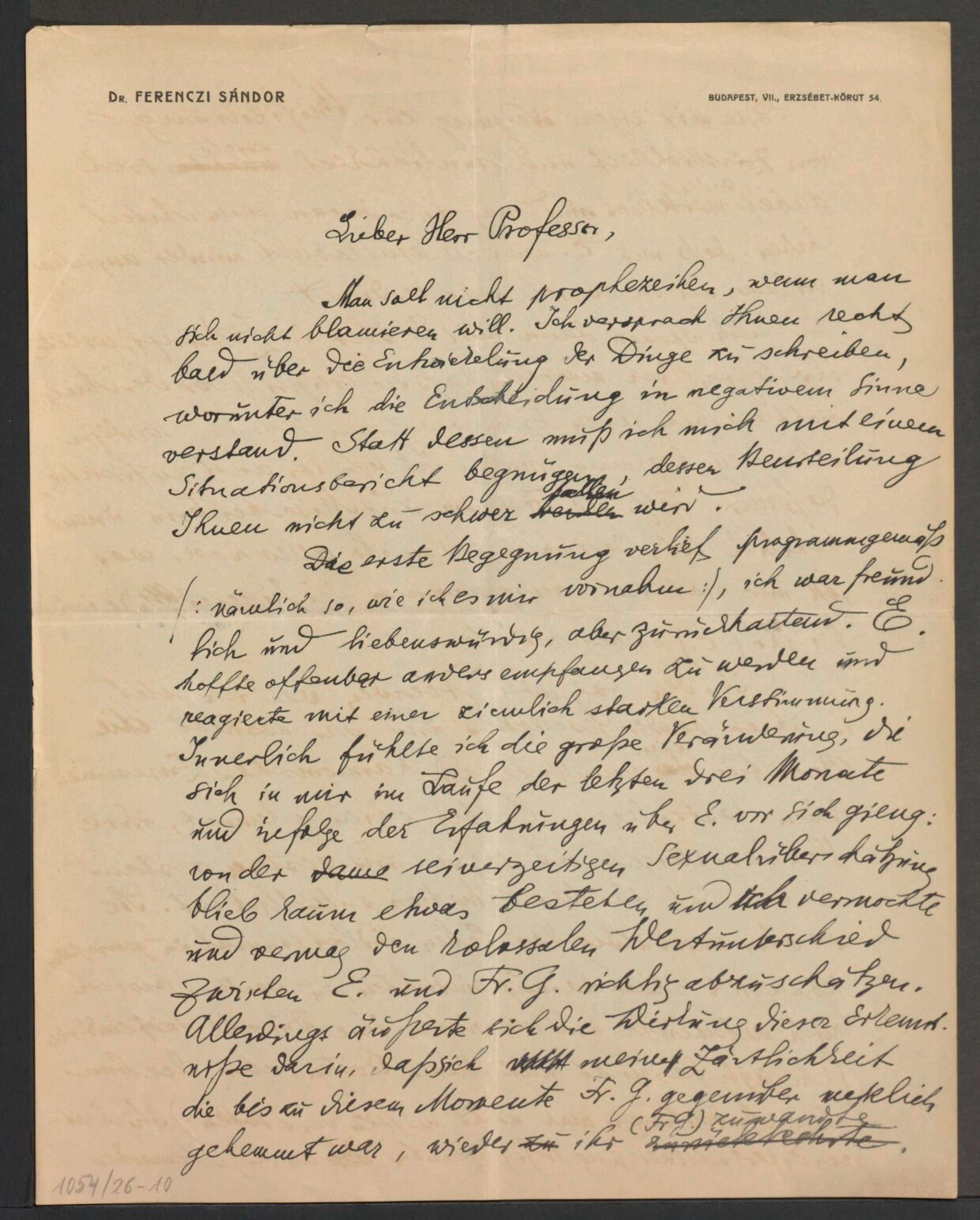 Freud, Sigmund, 1856-1939 [VerfasserIn] ; Ferenczi, Sándor, 1873-1933 [AdressatIn]