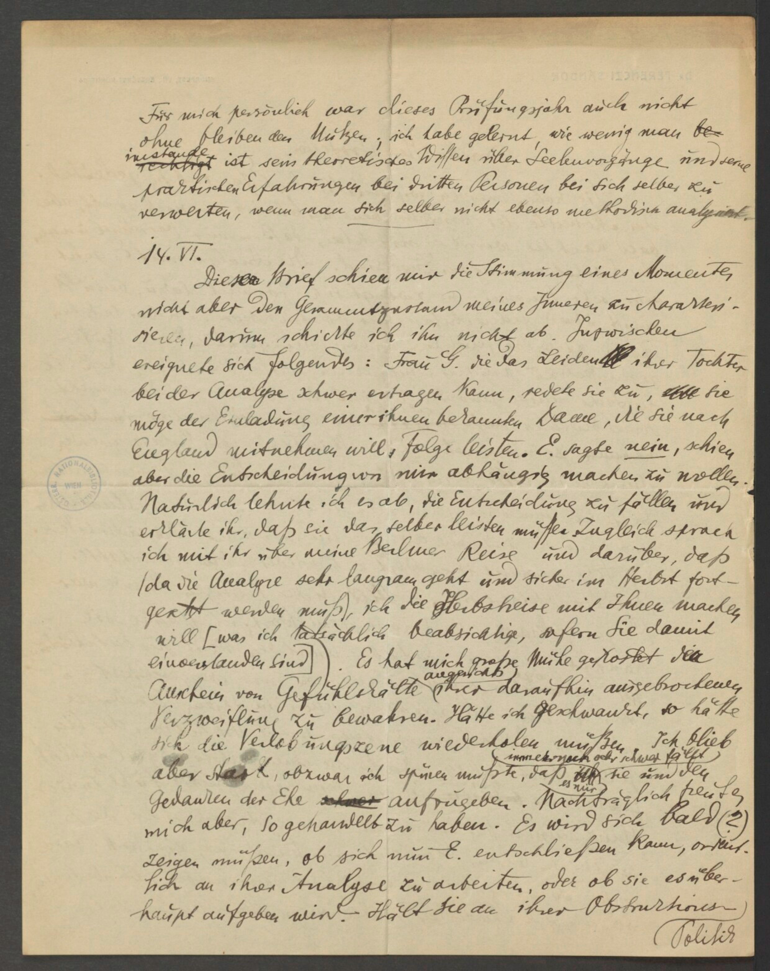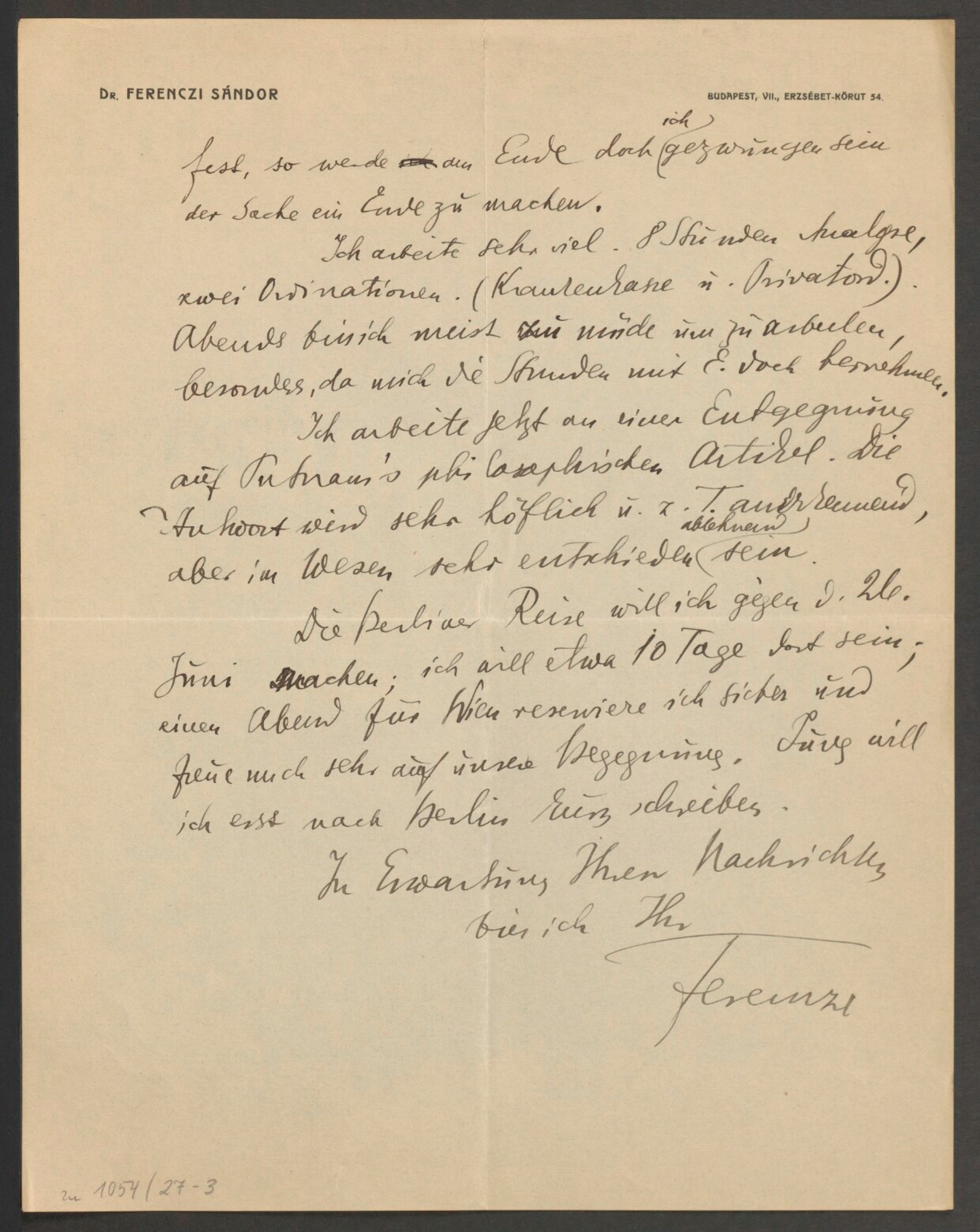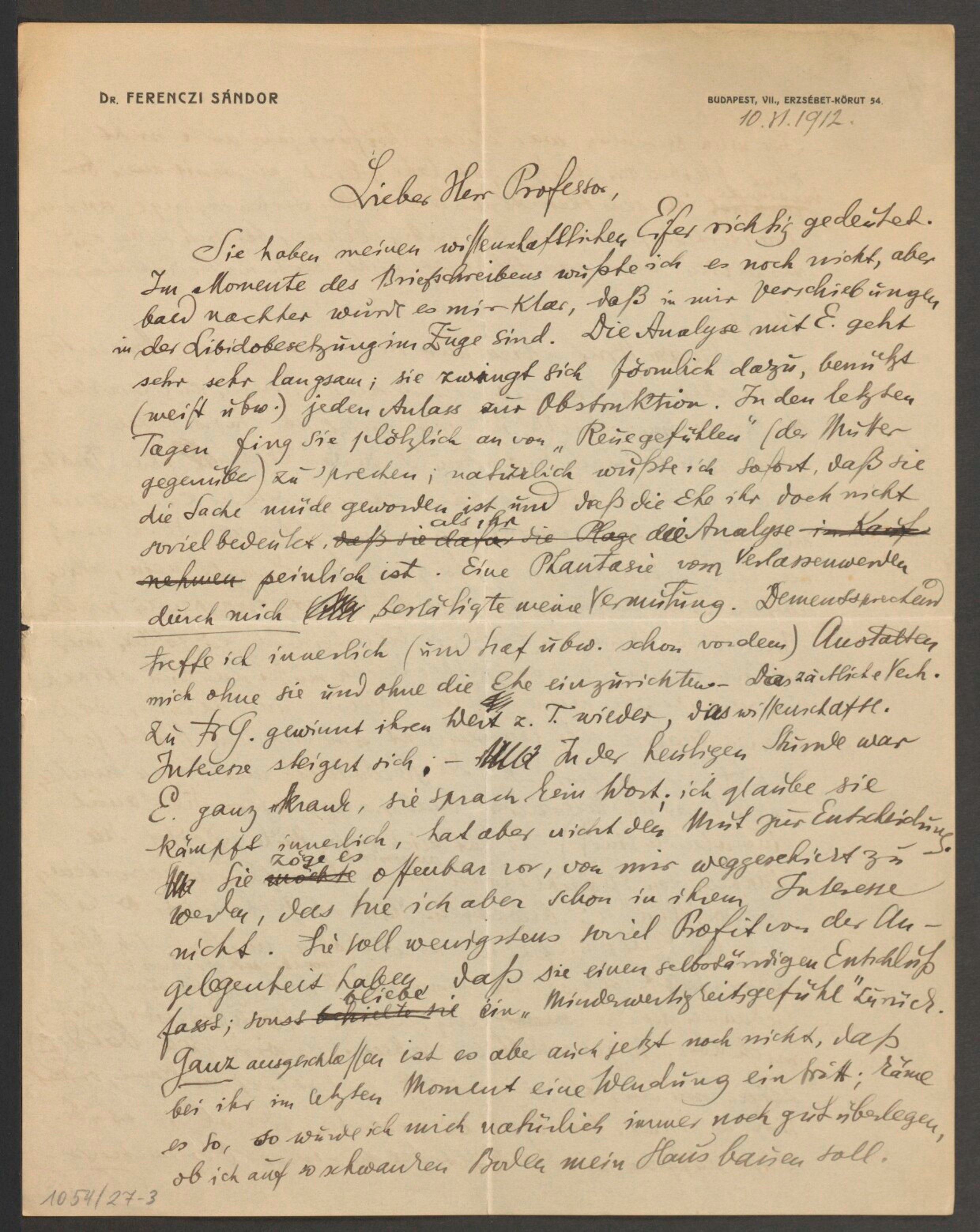 Freud, Sigmund, 1856-1939 [VerfasserIn] ; Ferenczi, Sándor, 1873-1933 [AdressatIn]