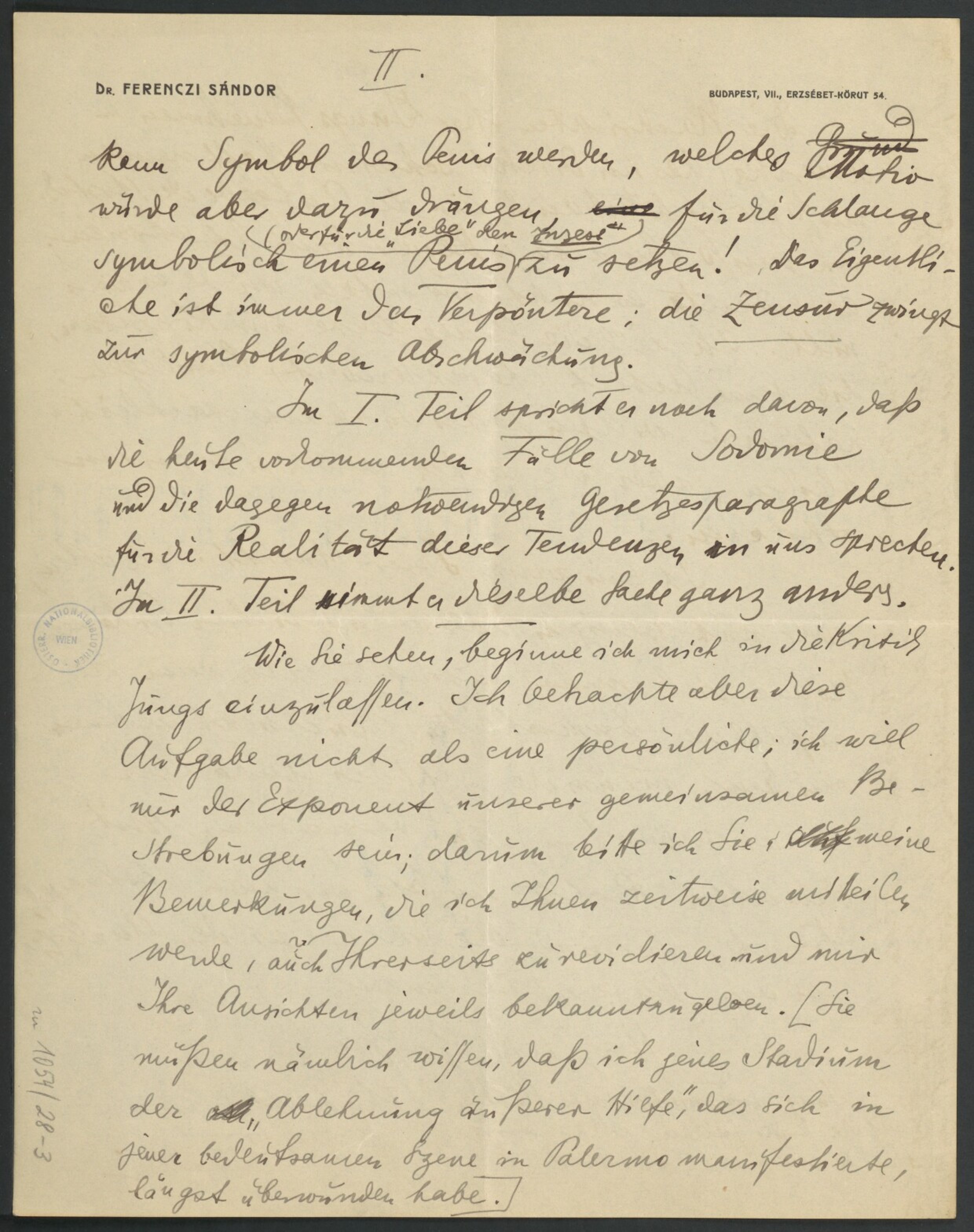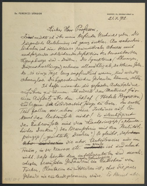 Freud, Sigmund, 1856-1939 [VerfasserIn] ; Ferenczi, Sándor, 1873-1933 [AdressatIn]