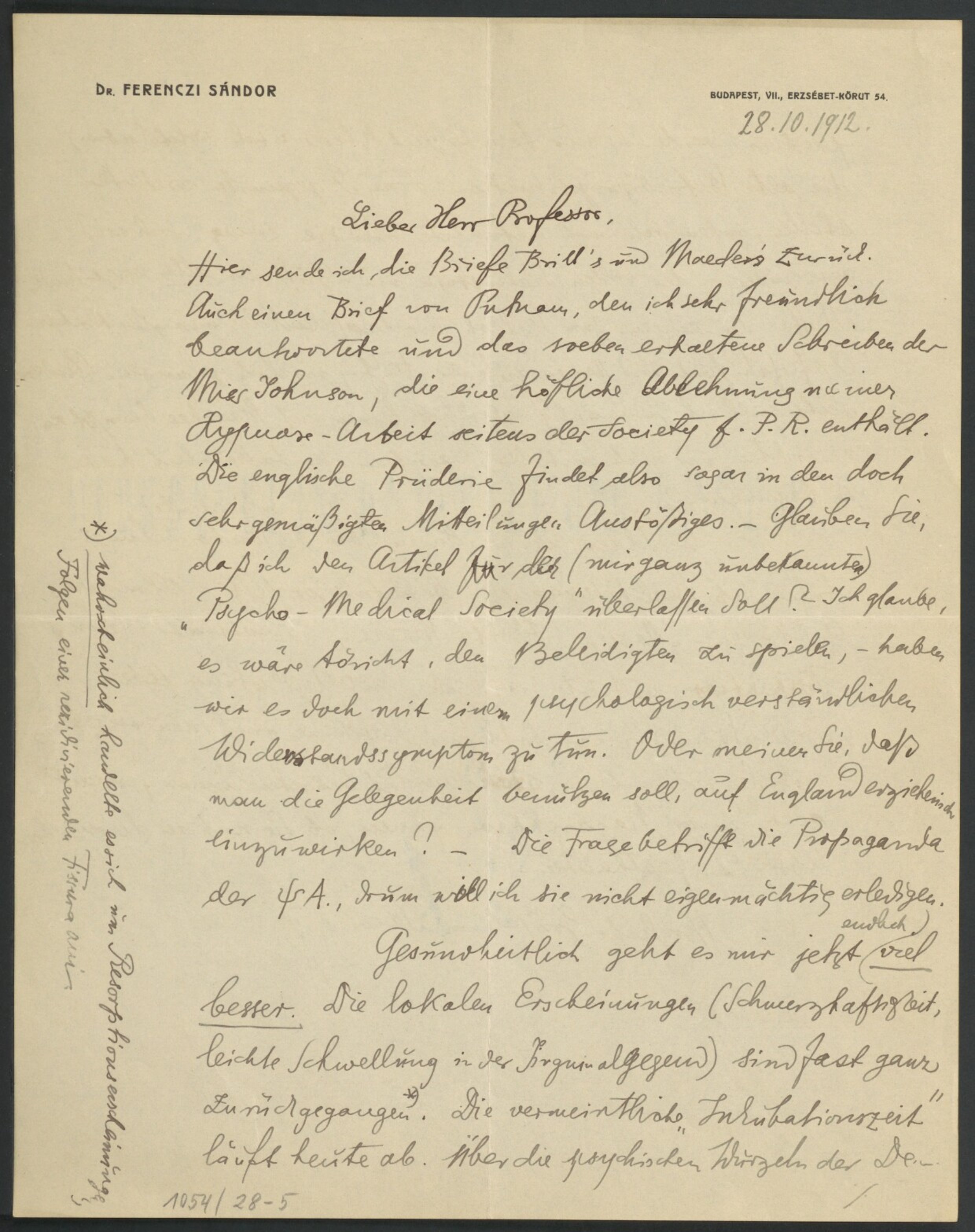 Freud, Sigmund, 1856-1939 [VerfasserIn] ; Ferenczi, Sándor, 1873-1933 [AdressatIn]