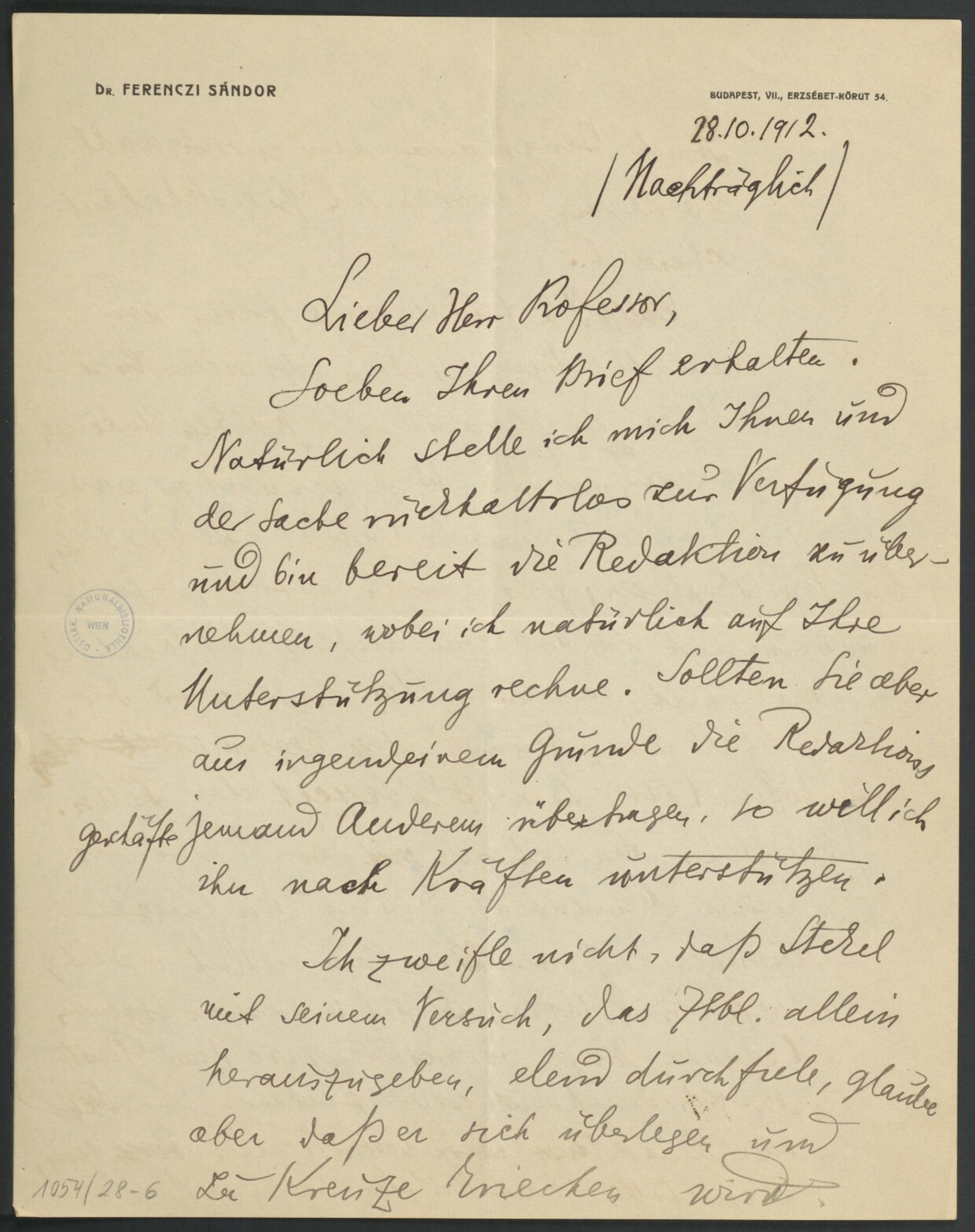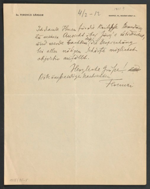 Freud, Sigmund, 1856-1939 [VerfasserIn] ; Ferenczi, Sándor, 1873-1933 [AdressatIn]