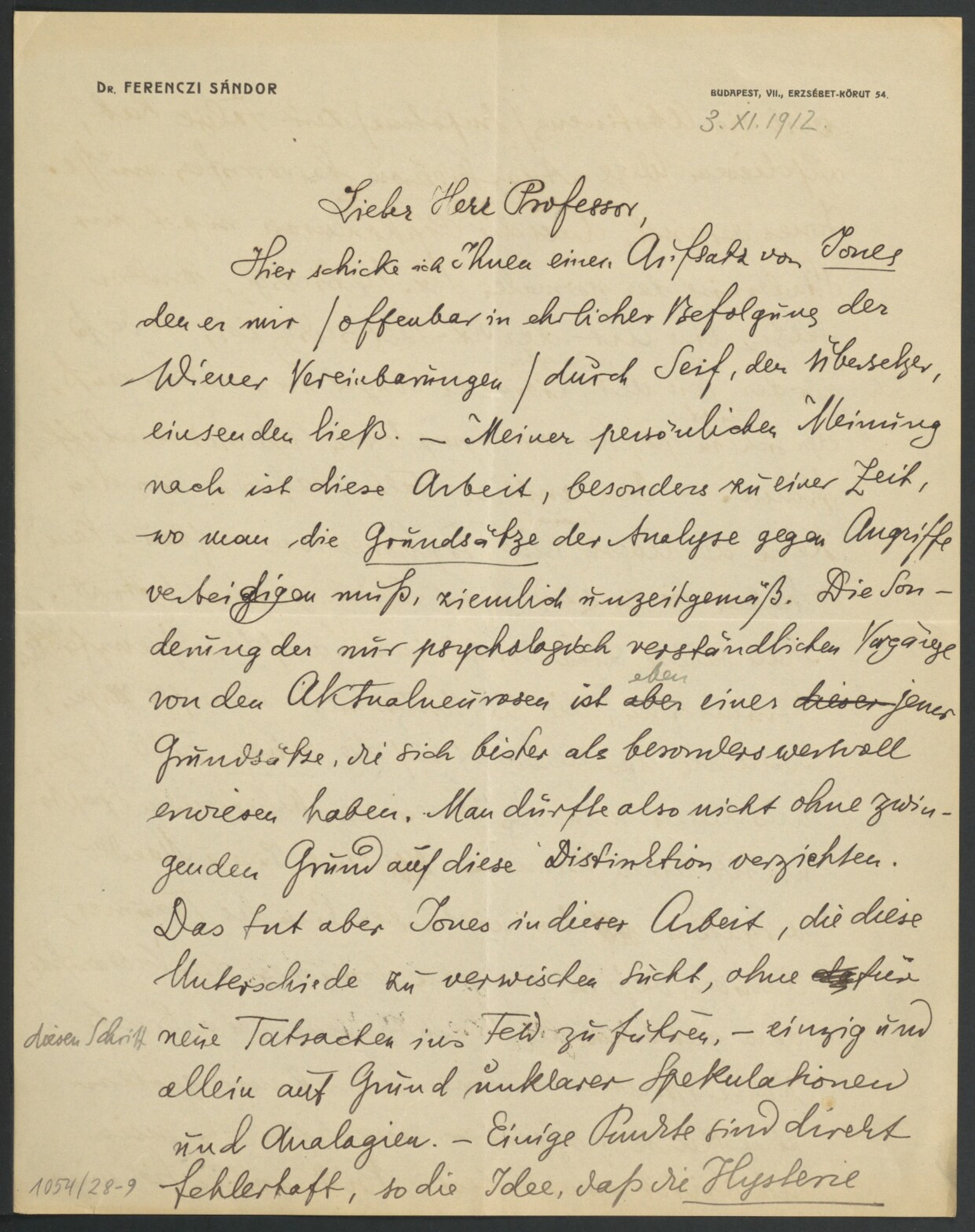 Freud, Sigmund, 1856-1939 [VerfasserIn] ; Ferenczi, Sándor, 1873-1933 [AdressatIn]