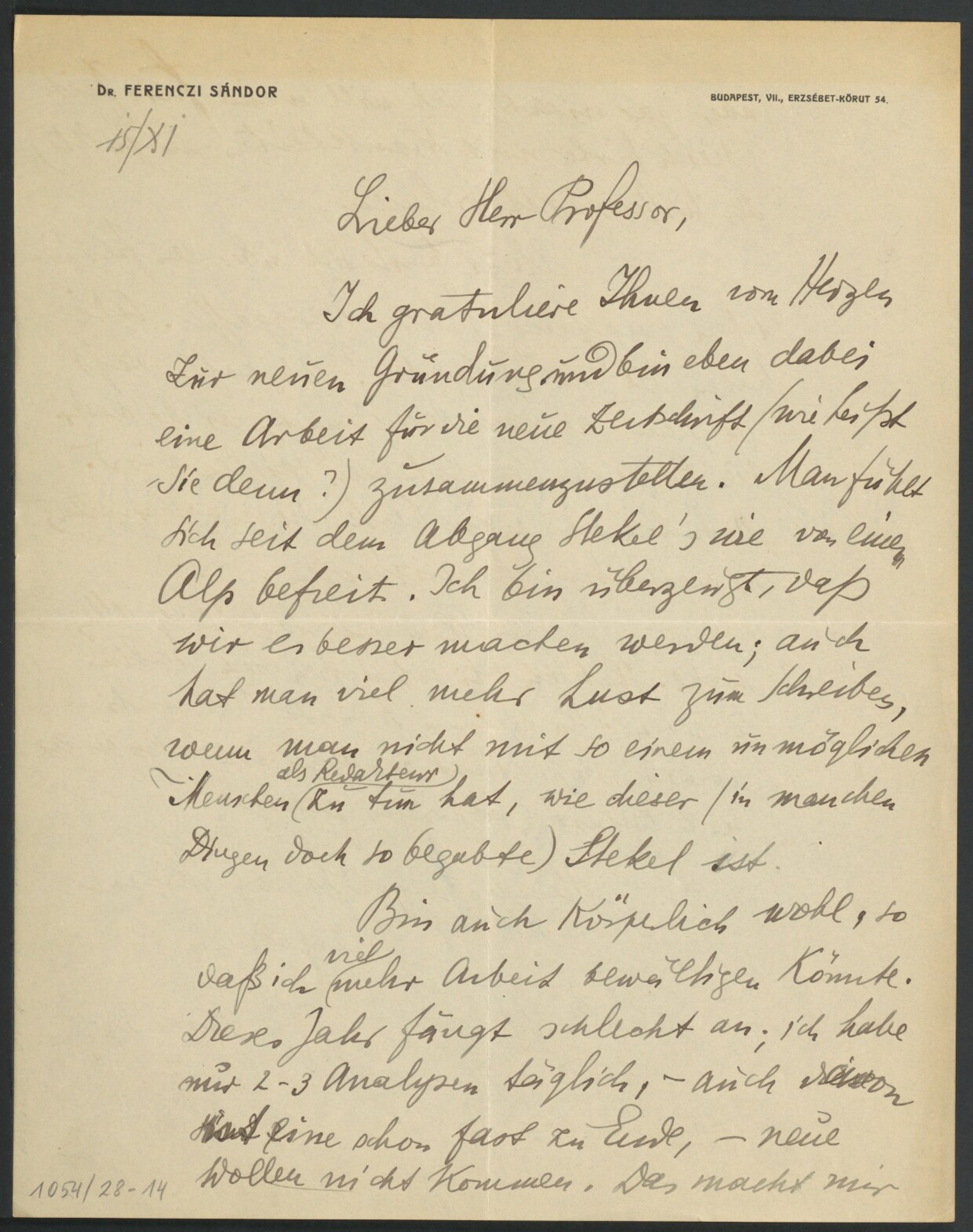Freud, Sigmund, 1856-1939 [VerfasserIn] ; Ferenczi, Sándor, 1873-1933 [AdressatIn]