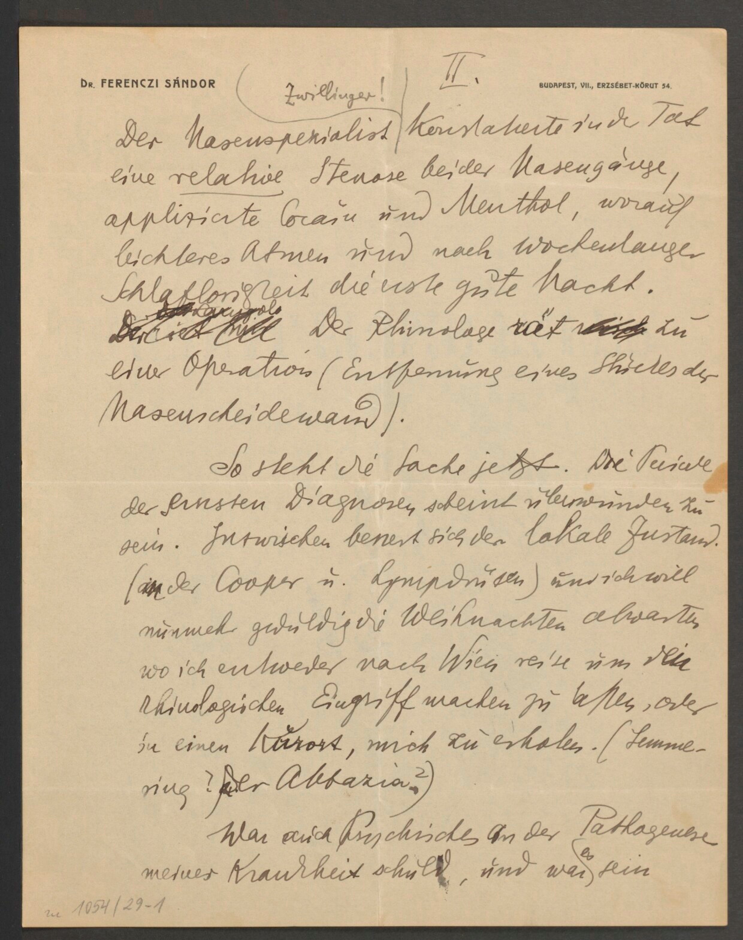 Freud, Sigmund, 1856-1939 [VerfasserIn] ; Ferenczi, Sándor, 1873-1933 [AdressatIn]