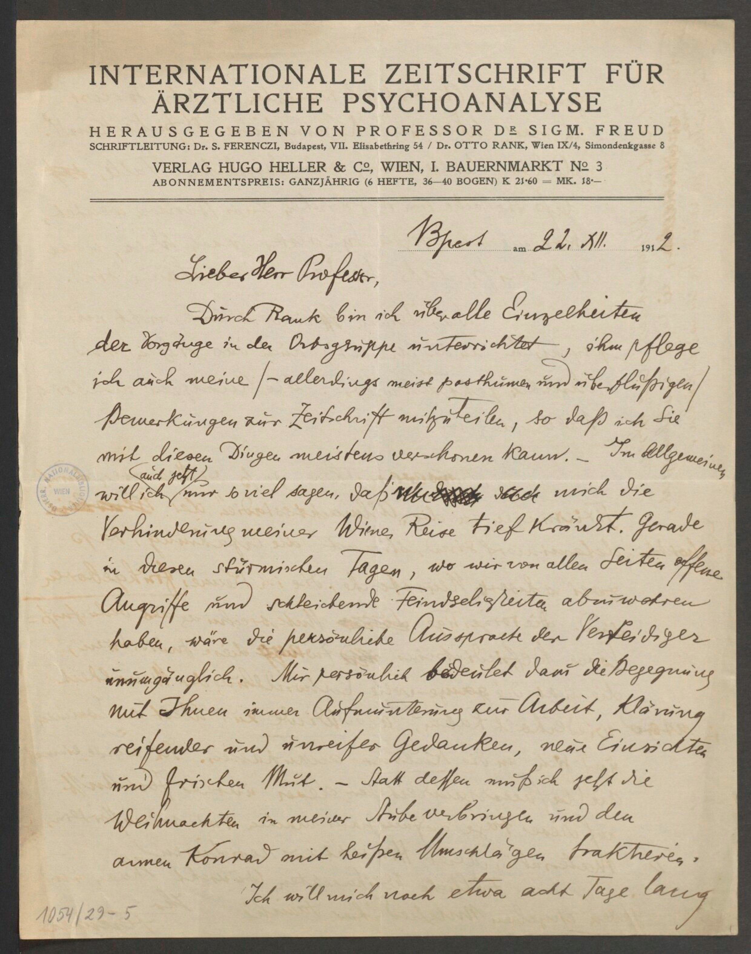 Freud, Sigmund, 1856-1939 [VerfasserIn] ; Ferenczi, Sándor, 1873-1933 [AdressatIn]