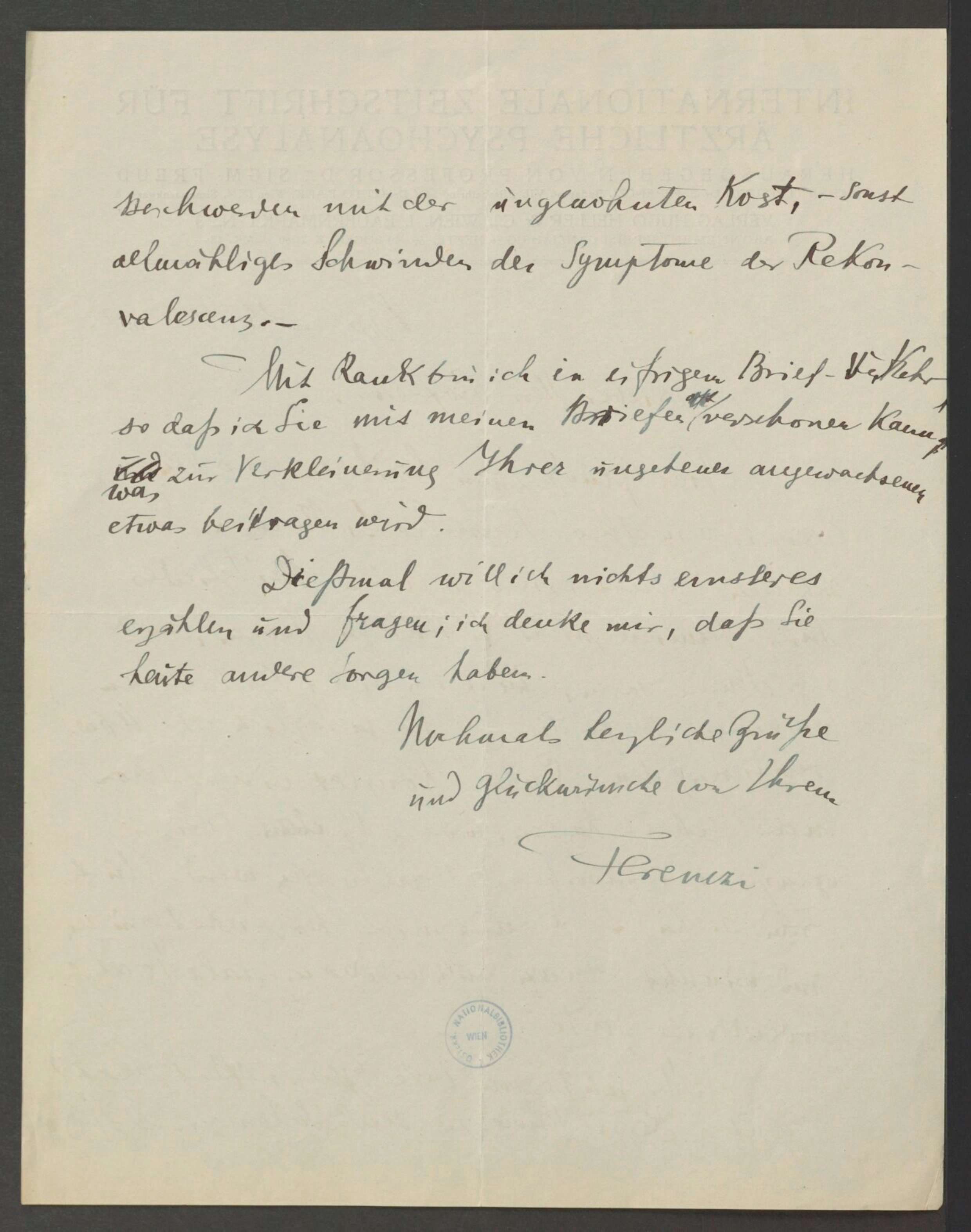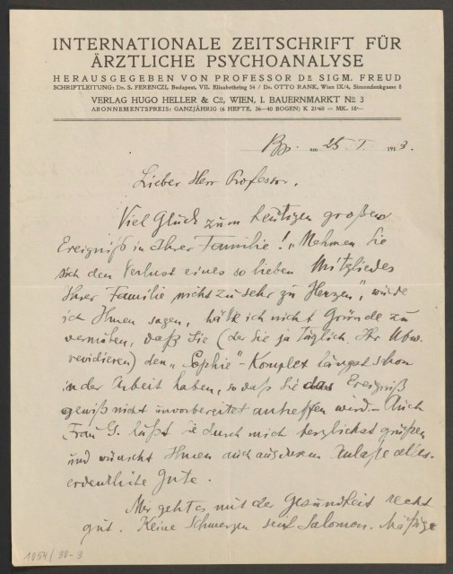Freud, Sigmund, 1856-1939 [VerfasserIn] ; Ferenczi, Sándor, 1873-1933 [AdressatIn]