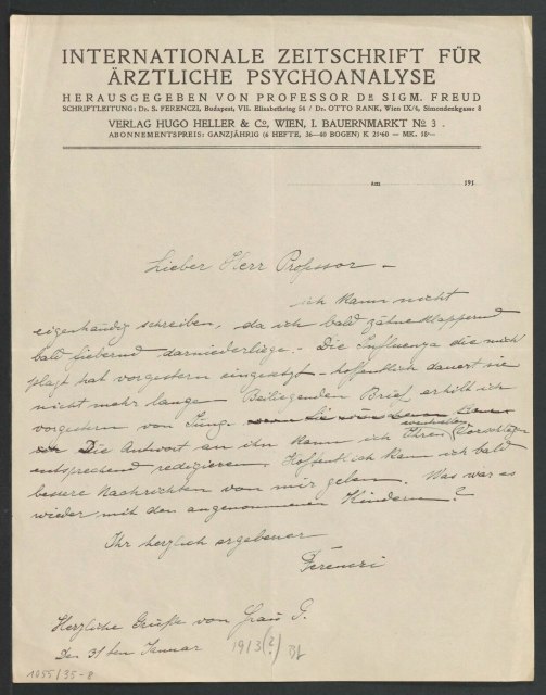 Freud, Sigmund, 1856-1939 [VerfasserIn] ; Ferenczi, Sándor, 1873-1933 [AdressatIn]