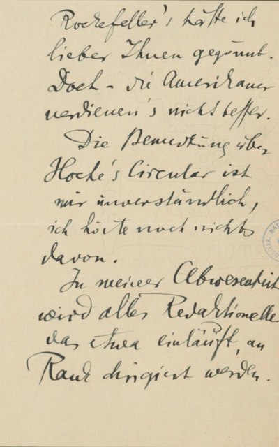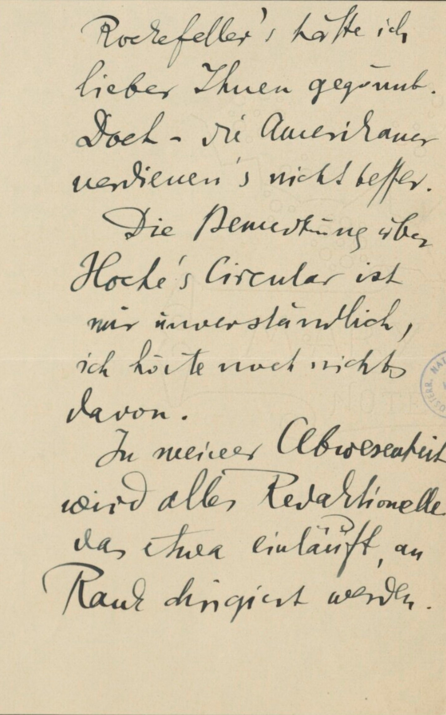 Die Berufung zu Rockefellers hätte ich lieber Ihnen gegönnt. Doch ‑ die Amerikaner verdienen's nicht besser.