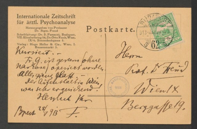 Freud, Sigmund, 1856-1939 [VerfasserIn] ; Ferenczi, Sándor, 1873-1933 [AdressatIn]