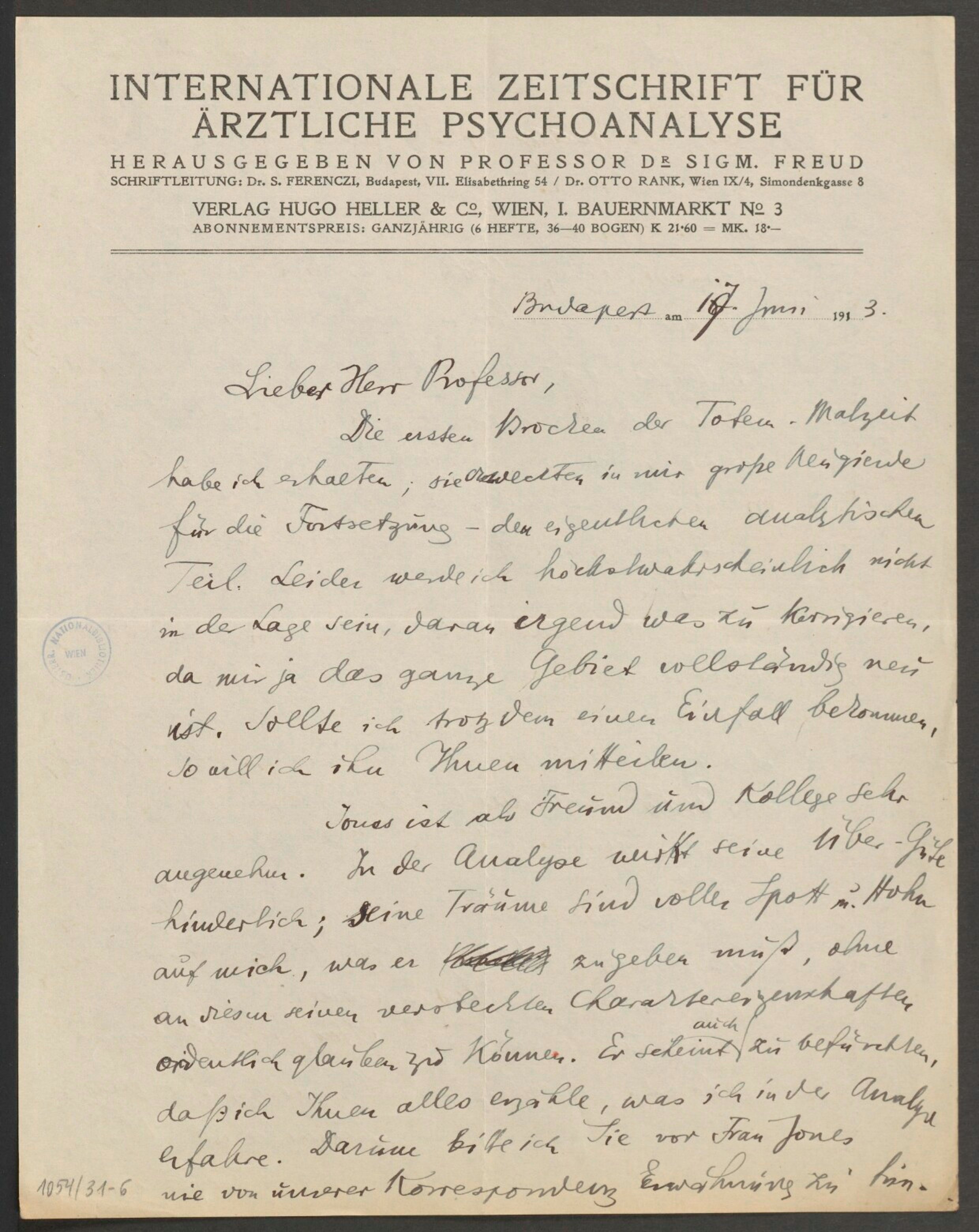Freud, Sigmund, 1856-1939 [VerfasserIn] ; Ferenczi, Sándor, 1873-1933 [AdressatIn]