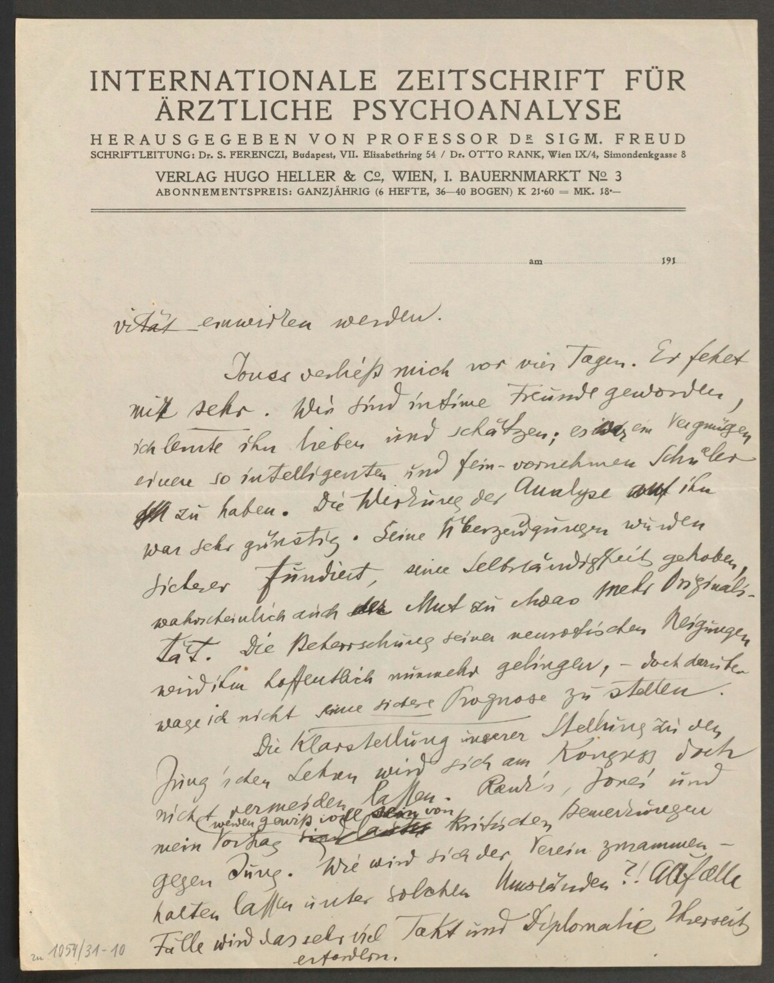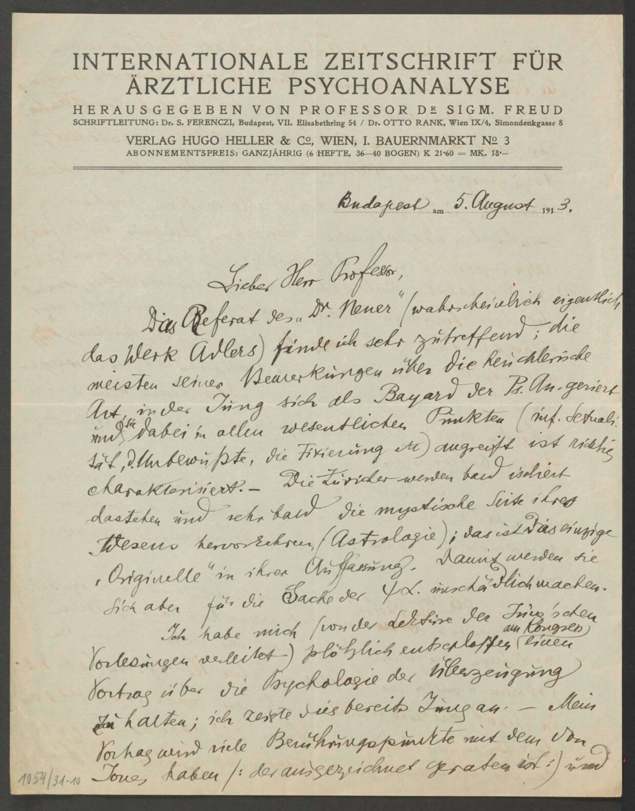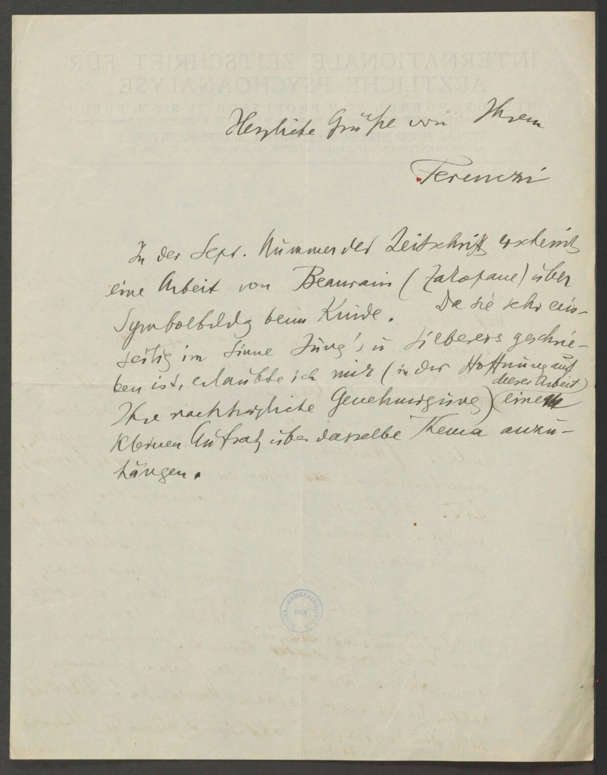 Freud, Sigmund, 1856-1939 [VerfasserIn] ; Ferenczi, Sándor, 1873-1933 [AdressatIn]