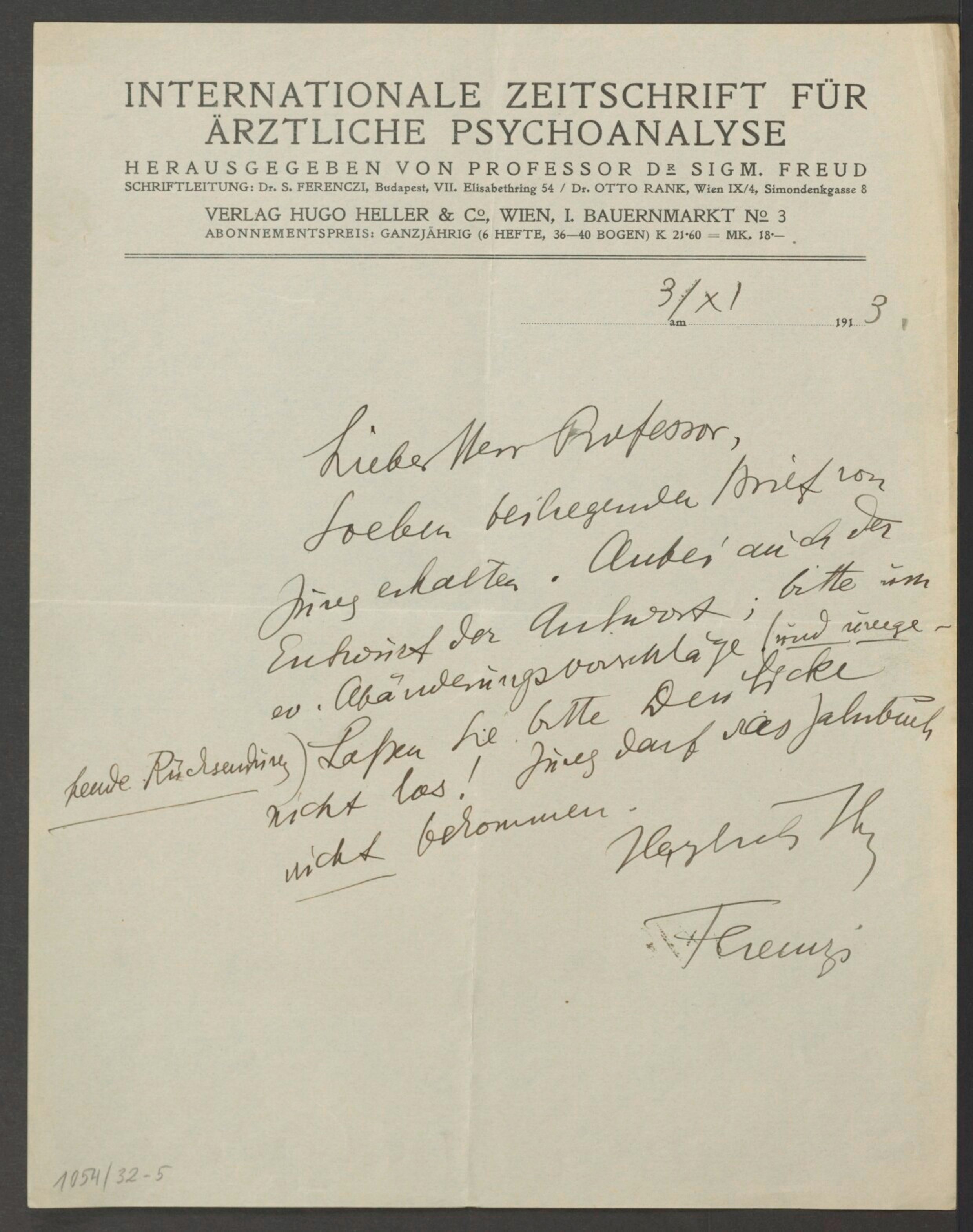 Freud, Sigmund, 1856-1939 [VerfasserIn] ; Ferenczi, Sándor, 1873-1933 [AdressatIn]