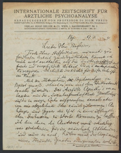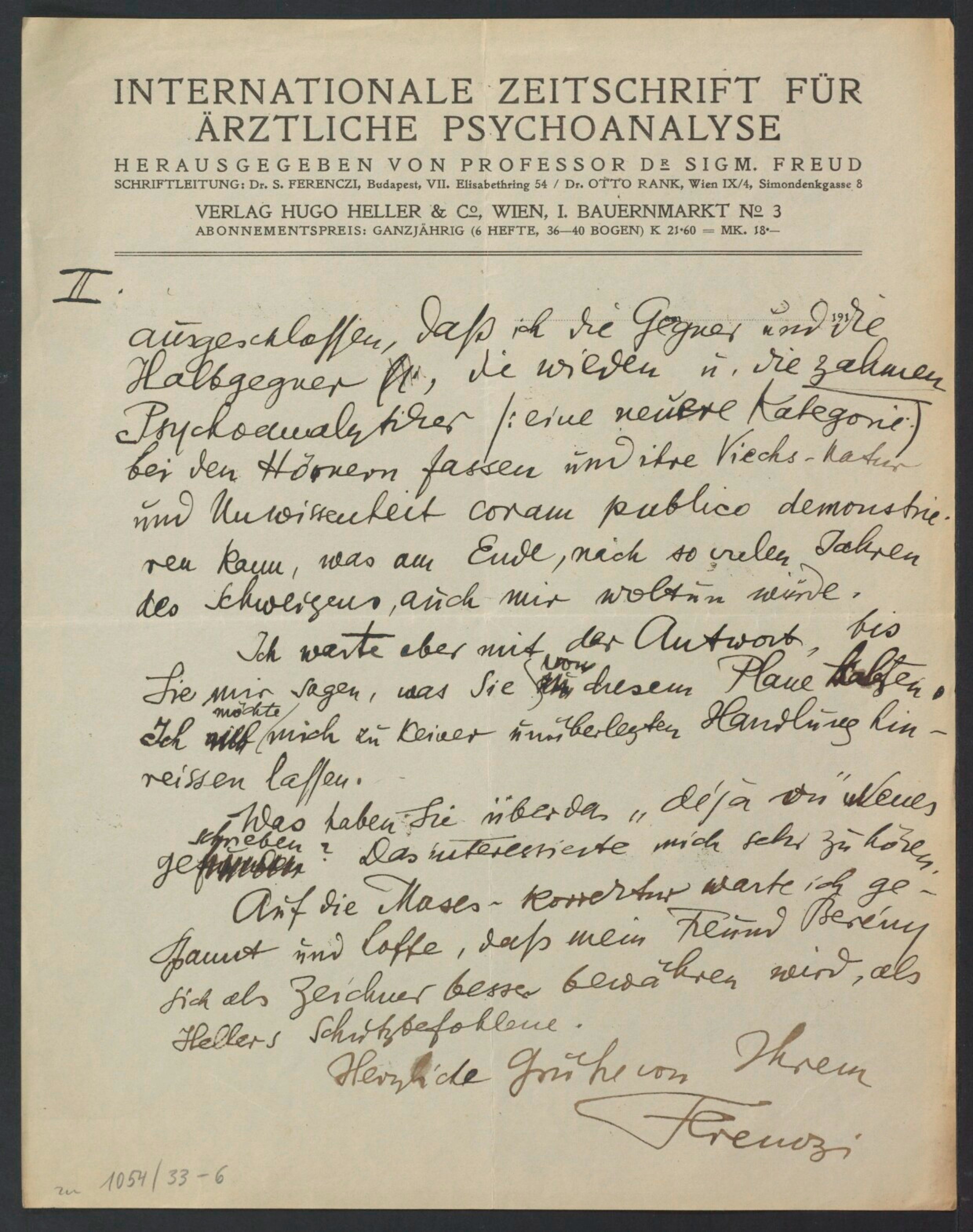 Freud, Sigmund, 1856-1939 [VerfasserIn] ; Ferenczi, Sándor, 1873-1933 [AdressatIn]