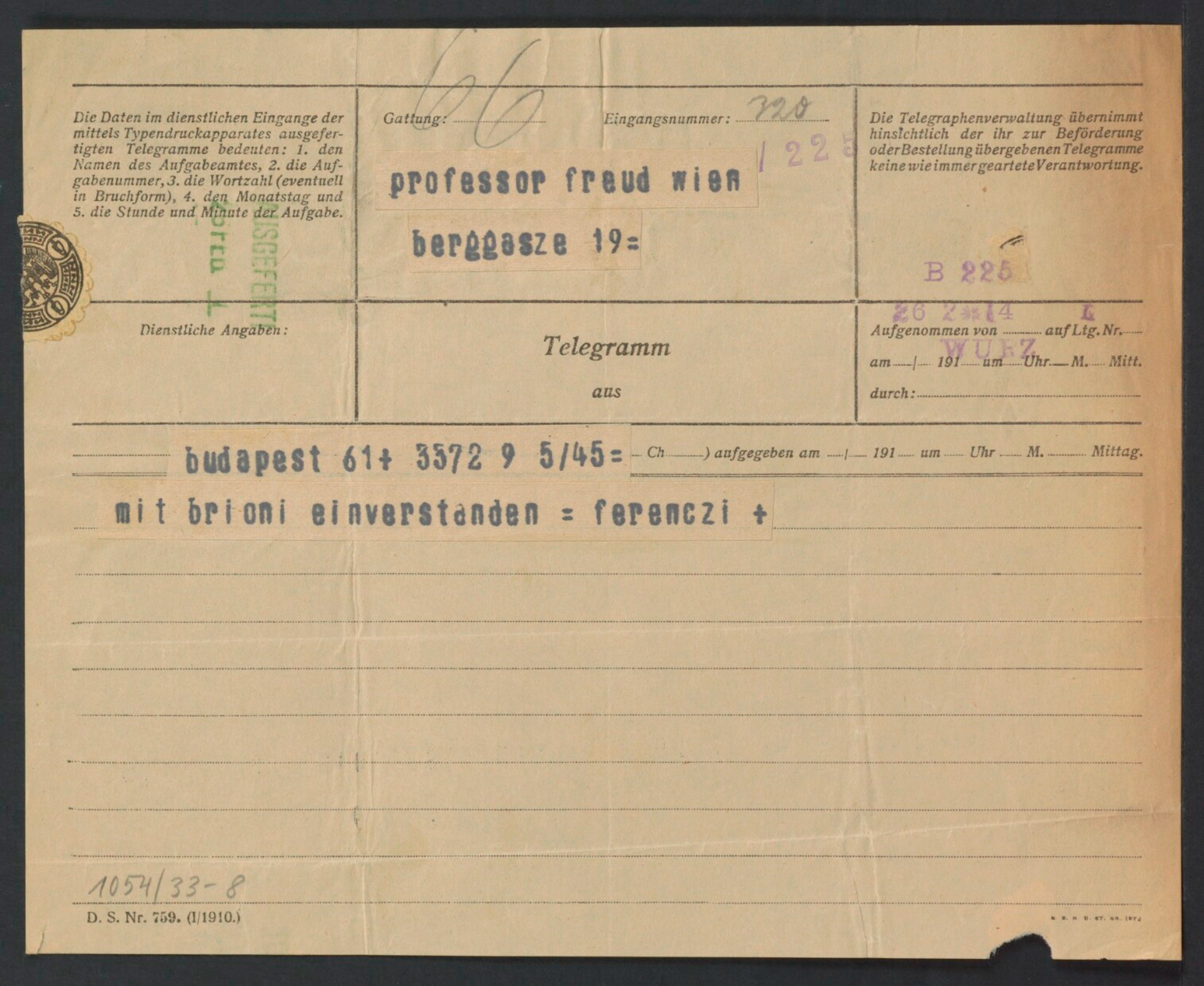 Freud, Sigmund, 1856-1939 [VerfasserIn] ; Ferenczi, Sándor, 1873-1933 [AdressatIn]