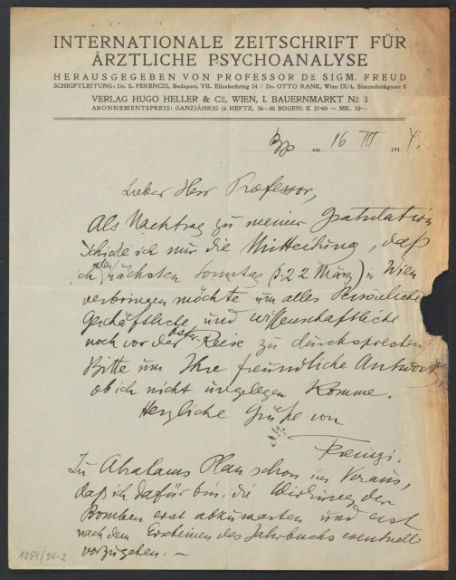 Freud, Sigmund, 1856-1939 [VerfasserIn] ; Ferenczi, Sándor, 1873-1933 [AdressatIn]