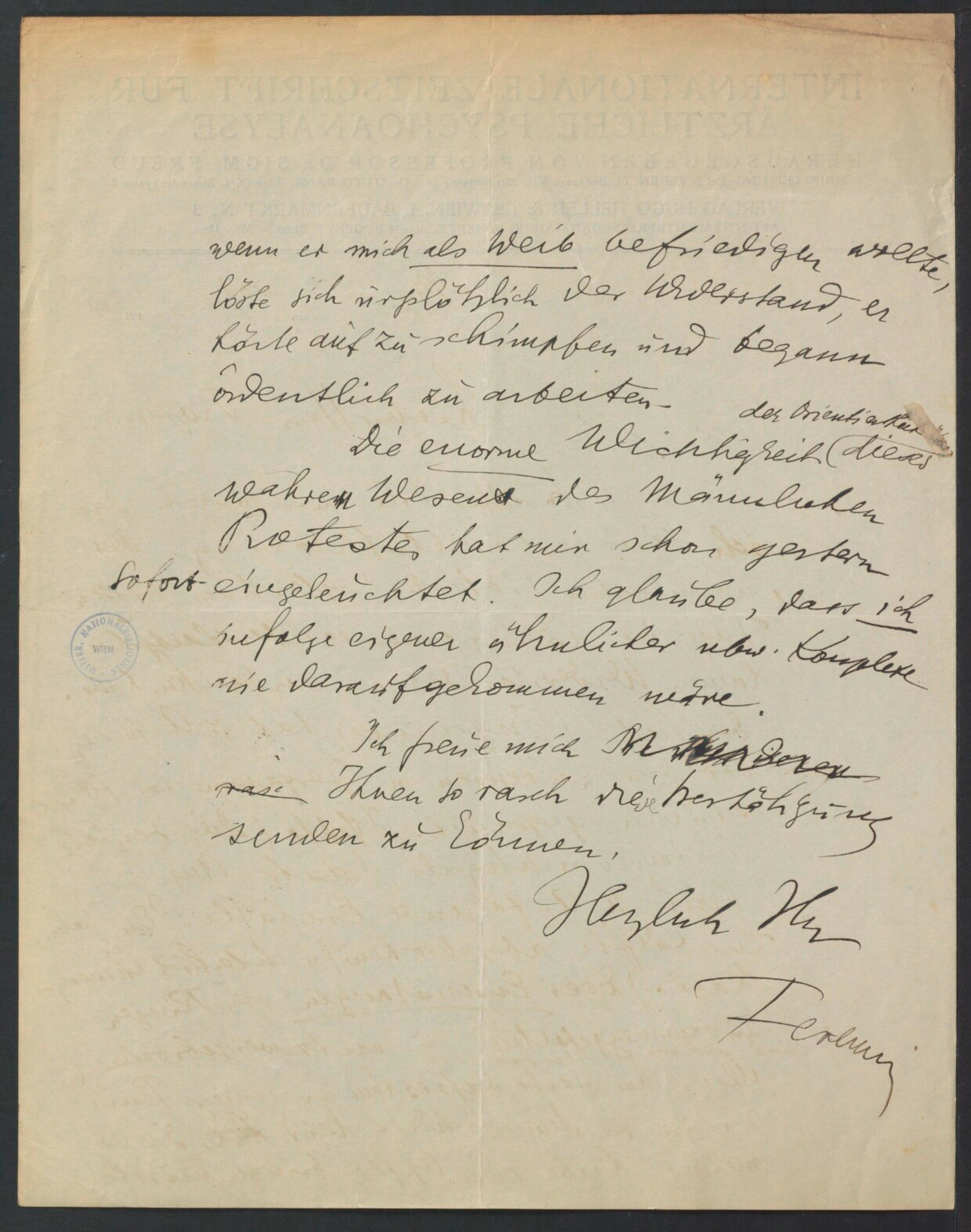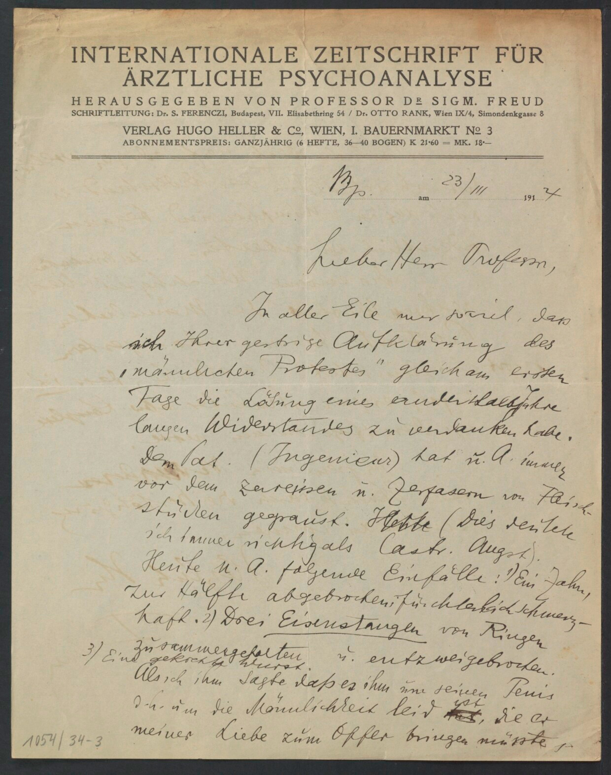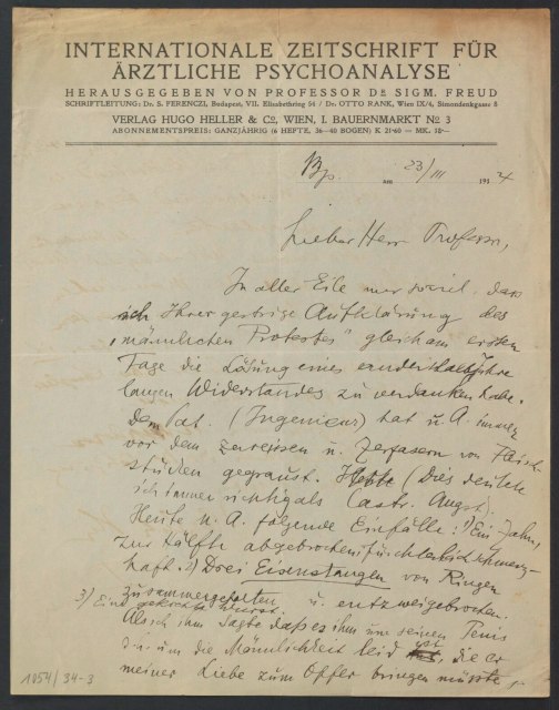 Freud, Sigmund, 1856-1939 [VerfasserIn] ; Ferenczi, Sándor, 1873-1933 [AdressatIn]