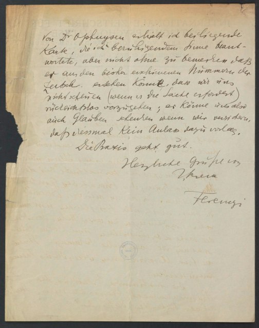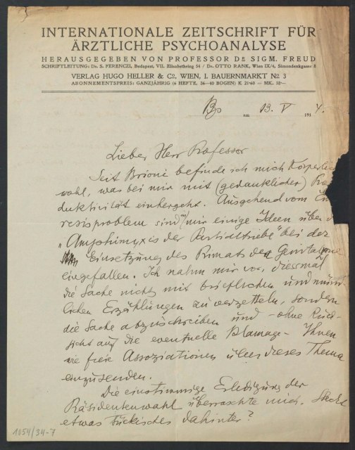 Freud, Sigmund, 1856-1939 [VerfasserIn] ; Ferenczi, Sándor, 1873-1933 [AdressatIn]