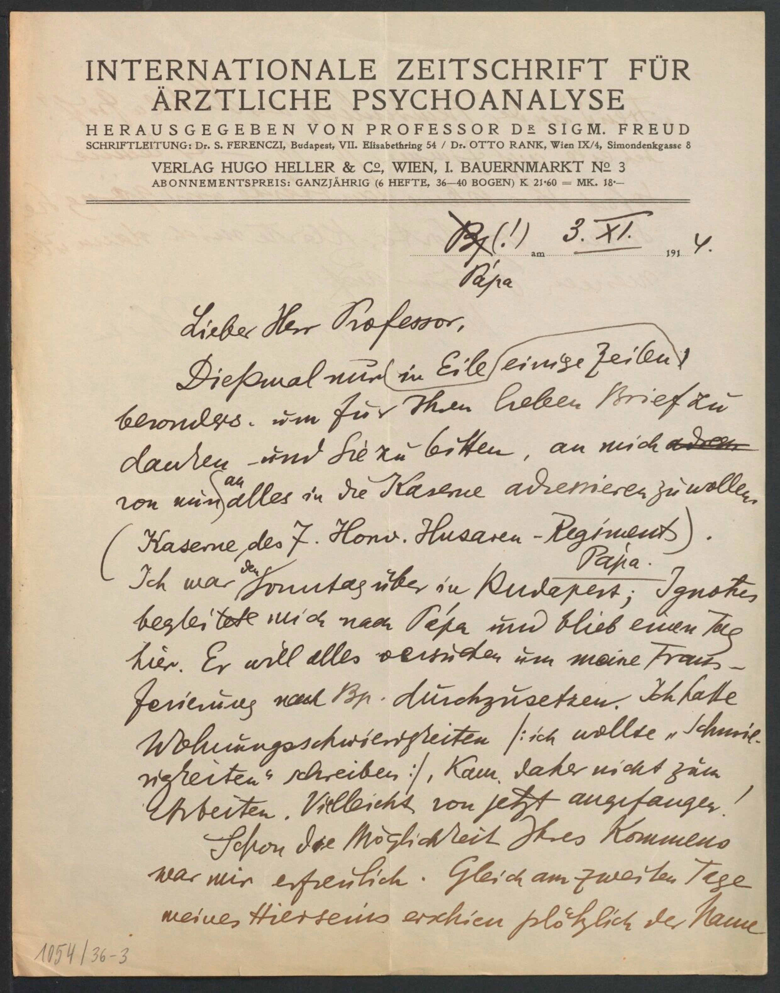 Freud, Sigmund, 1856-1939 [VerfasserIn] ; Ferenczi, Sándor, 1873-1933 [AdressatIn]